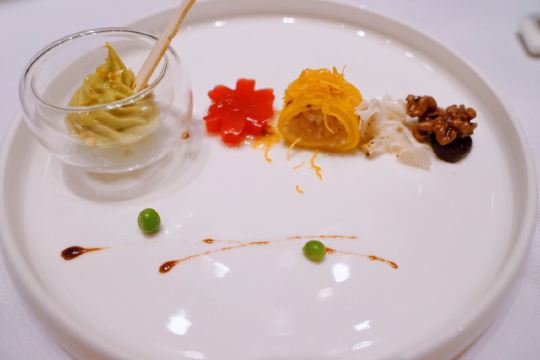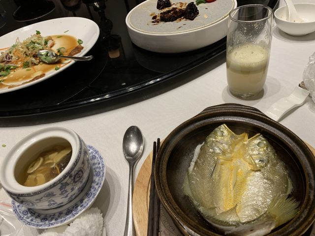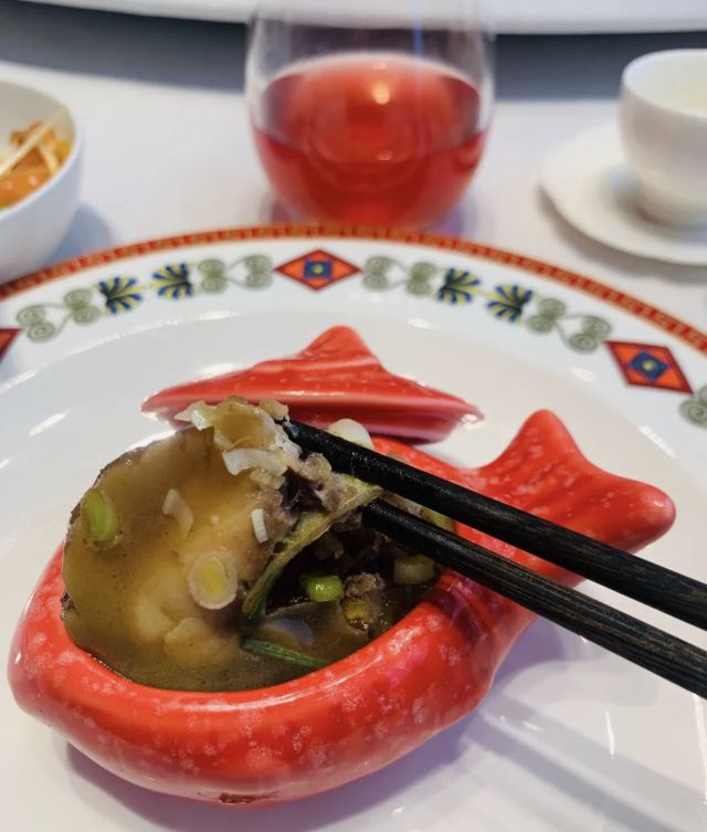 膳道 民国风 创意菜较多 包房整洁 服务员训练有素 上菜节奏不错 竹炭野生鸡枞菌 包裹的恰到好处 焦香 红山楂蝴蝶 很开胃 轻盈的感觉 澳龙 有一些些老 虾脑炖蛋倒是没什么特别 葱烧辽参 配的菠菜面 热浇汁不错 龙舌鱼 拆好的 方便 小盅汤 六七个小时熬出来的汤 里面的腰果嫩到入口即化 比较突出的一道 门口挂上了包房X公馆 客人不会走错了