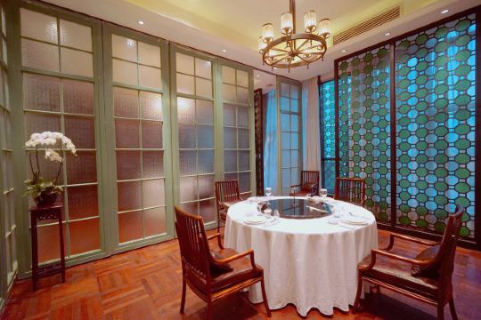 蓝色的郁金香88【环境】 推开餐厅那扇历经百年岁月沉淀的门,迎面而来的是满满的老上海风情,它不仅是一家风韵犹存而不失优雅的餐厅,更是一座绽放上海璀璨芳华的时光机。细碎的光从斑斓的玻璃外透进来,迷离的水晶灯投射下,透着一眼流年的味道,像是只古老的留声机缓缓转动,流出的既是音乐也是历史。。。。。。 每间包房的门牌是预订人的姓,纤纤素手,轻轻一拨,带我进入另一个时空,一个秀色可餐的世界。 【服务】 餐厅会根据预订人需求来设置是否要在包房门口挂姓氏。不管是预订的包房,还是坐在大堂内,都有专门的服务员为你服务:上菜、报菜名、换盘等。wifi速度很快。 【美食】 有人说养眼的美食是瞬息的毁灭艺术,而我则认为美味很多时候会让淑女从优雅吃出张牙舞爪,让绅士从儒雅吃出粗鲁,到化为未来的回忆和感动,那种过程无以言表。 #餐前零食#店家自己做的核桃仁酥,用核桃肉做成泥和当季花生融合而成的零食,好吃到差点正菜也吃不下了。 #黄金牛蒡养生功夫汤#用牛蒡的根茎熬制的汤冲泡牛蒡,汤汁清淡,降火解毒功效,经常喝能清除体内垃圾,改善体内循环,促进新陈代谢,被誉为身体自然的最佳清血剂。配上一款小点心,完美的餐前序幕。 #葛仙粒落玉盘#清炒薏米、豌豆,颗颗风韵饱满,清口嫩爽,一盏牛蒡养生功夫汤,一勺玉盘,静心享受与朋友间的友谊之光。 #五色润五脏#店家招牌菜,也是首家将五行五色与五脏六腑养生结合起来做菜的餐厅。因为只有当我们的五脏功能正常了,才能够远离疾病,健康长寿,这也才是五脏养生的真正意义。左一玻璃杯内的绿色牛油果泥养肝的,左二红色山楂补心的,中间那个黄色脚板薯益脾胃,右一黑核桃仁补肾,右二白色菌菇润肺。 #松叶蟹两吃#蟹脚微炸,使得蟹肉脆脆的,蟹黄和藜麦一起炖蛋,入口滑爽即化,特别适合无牙的老人、小孩。 #药膳归元鱼羊鲜#特别喜欢这道滋养气血、补元阳、益气、疗虚安神的冬令补品羊汤,羊肉既能御风寒,又可温补身体,像是可以打通身体的关节,瞬间的活力可以抵抗冬日的寒冷,汤炖好后放入鱼肉馅的小馄饨,热乎乎暖胃无膻味汤汁浓醇鲜香,在冬天给你一个温暖的原汁原味拥抱。 #刺身#甜虾肉质甘甜紧实有弹性。三文鱼海风轻吻过的滋味,绵密饱满,丰腴的口感,每一口都可以感受鱼香弥漫散开的自然味。 #铜钱萝卜#“萝卜青菜各有所爱”,她家的萝卜就是我喜爱吃的,这萝卜吸足了红烧肉的汤汁,口感绵软,味道香浓,其质感和口感足可以和红烧肉来媲美。