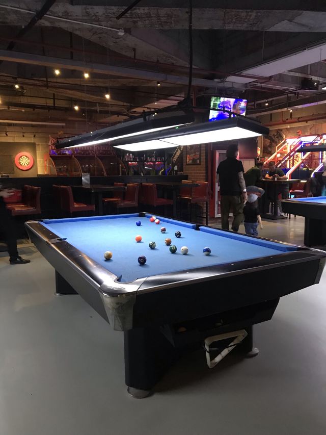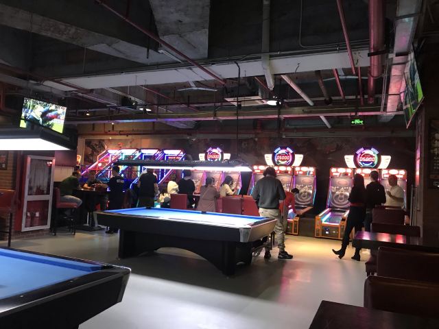 Iamis在静安体育中心这里竟然有这么大的一个室内乐园,太有趣啦。 交通上不是很便捷,离地铁站都有点路程。 里面的场地非常大,入口处登记信息,看随身码,测量体温,还会提示用免洗洗手液。 这里可以玩棒球,桌球,飞镖,游戏机形式的投篮、乒乓球等,还有一个小场地,有一群小孩子跟着教练在训练。 棒球,游戏机形式的投篮,乒乓球都需要扫码才可以玩,第一次体验棒球还挺有趣的,选择的慢垒,球速不快,球杆倒挺重。 这边可以边玩边用餐,用餐区和游乐设施是融合在一起的,这点很不错。 洗手间是见到过最简陋的,感觉是装修还未完工,门帘是一块布料用夹子夹一夹。也没有挂包的地方。装卫生纸的塑料外壳连带卫生纸是放在地上的。