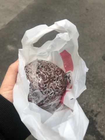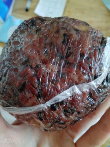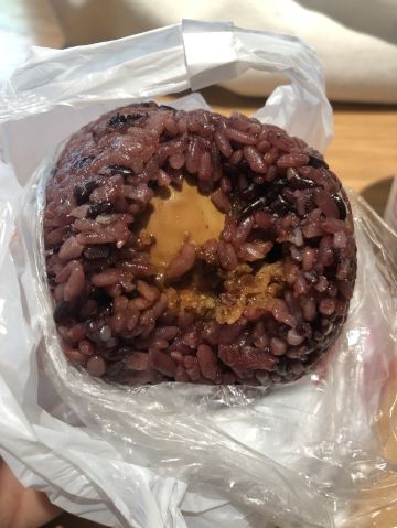 当天路过真圆粢饭团新闸路店看到有好些人在排队等候,勾起食欲,赶紧下手,前面有位食客买了6份套餐,其中有两个饭团需要加大装,店员手脚麻利,等了些许时候。我点的是卤蛋饭团,上次吃的是虎皮蛋的也很不错的,乌饭加入脆油条粒、糖、肉松、卤蛋并浇入卤水再加乌饭裹紧食材,一切OK。吃起香,喜欢吃甜的食客可以加店员多加些糖,好吃。
