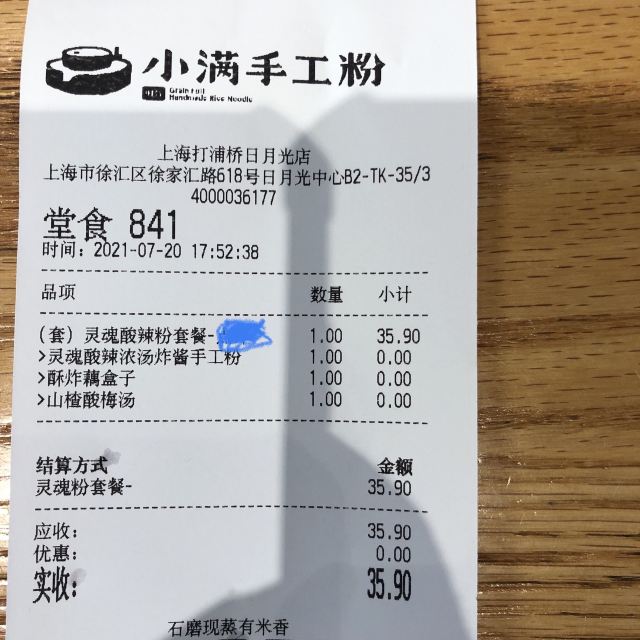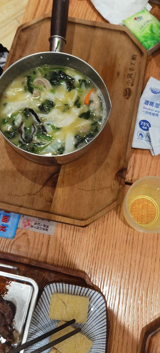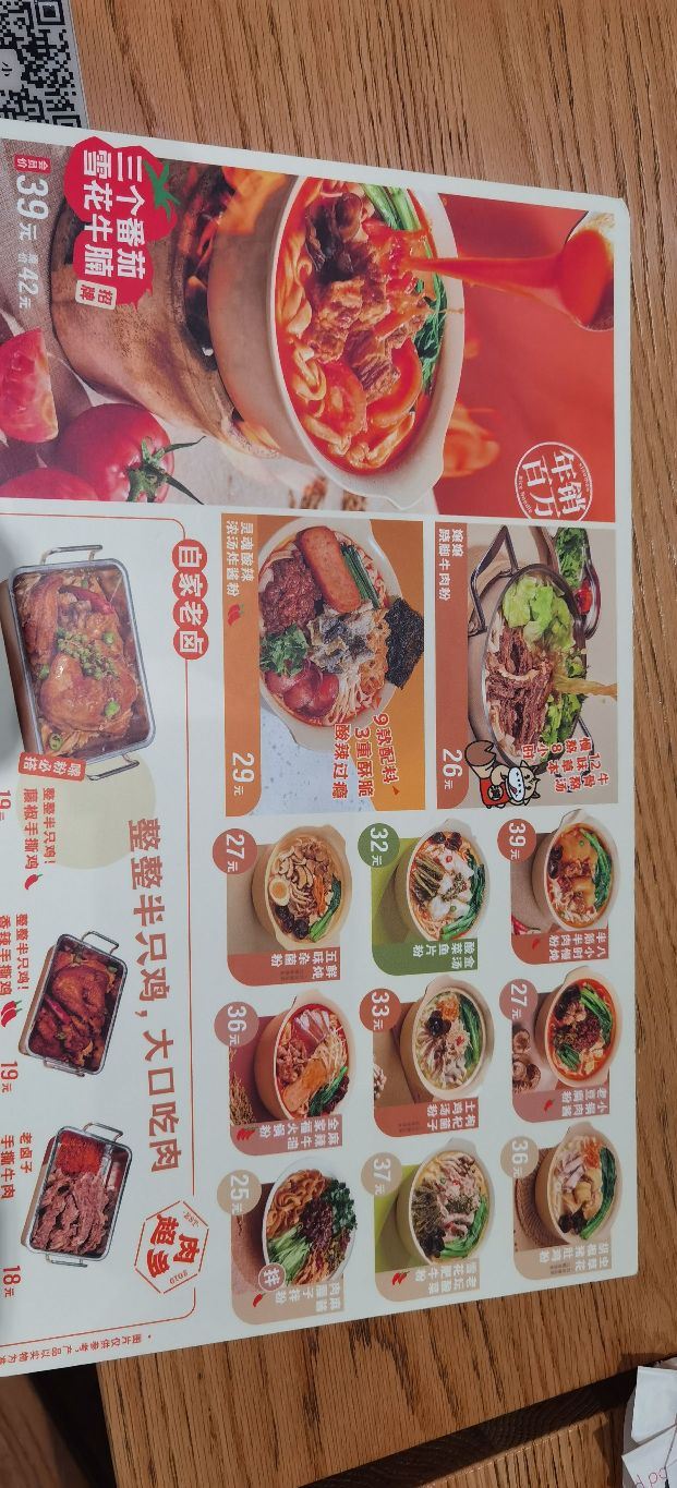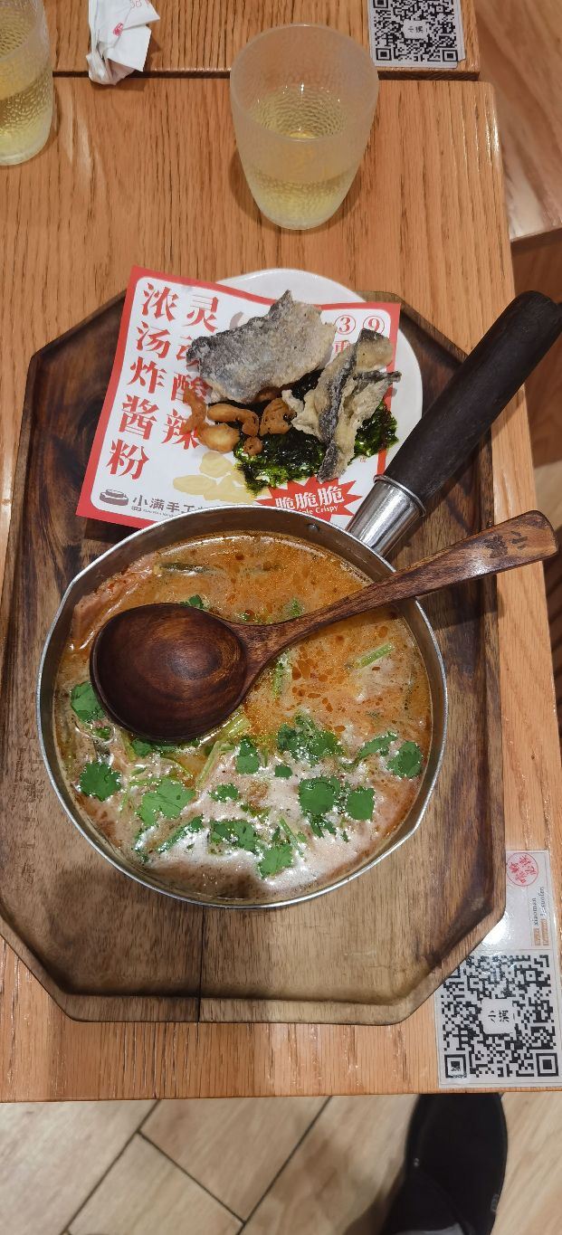 小满现在门店很多,这家倒是第一次来,中午的时候人真是多,要排队。店里几个服务员忙着出餐,顾不上呼应。 原来一直蛮喜欢番茄牛腩粉,但看见出来了新品,跷脚牛肉,最近挺热门,就尝试一下吧。 粉的量不多,不够的可以免费加。关注有糍粑送,吃完鲜的吃点甜的,也是不错的搭配。