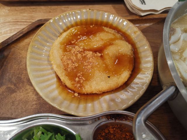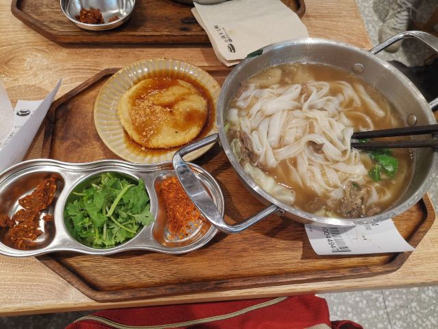 这家店在日月光的地下二楼,这里有点像大时代,吃喝玩乐应有尽有有各种各样的小型店铺,不过这家店铺相对来说是比较独立的,而且稍微有点难找,在比较深处的地方,店面还是很大,不过座位有点拥挤,中午的时候人坐的挺满,味道非常的不错,这里是自助点餐的,而且是你下单之后,他才现做,所以速度稍微有点慢,这里有很多的调料,比方说酸菜或者说是酸豆角,你可以自主也味道非常不错,还有的是如果吃完这里还有免费的棒冰,可以让你大快朵颐,这里的收纳也非常有意思,是一个柜子,你找到一个个空格,把吃完的东西直接塞进去就可以了,这家店的粉是可以免费加的,汤头也非常的浓郁,建议加一些鱼皮和卤蛋,应该还算是绝配。这家店的墙面上有一些手工粉的介绍,他每天是现磨的米粉,应该算是一个特色吧。