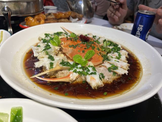 awu45这家也算是上海本帮菜连锁的老牌子了,紫金广场这家店不算很大,位子感觉有些局促,整体比较老上海的既视感,我们一行八人买了个6人套餐又加了几个菜,总体来说感觉70-80分吧!觉得这个价格没有完全作出本帮菜原汁原味的feel! 🦀松叶蟹还算鲜美,蟹肉不算很壮,肉饼倒是蛮厚实的,佐以蟹的鲜味倒是下饭好物; 🦆烤鸭感觉很普通,皮不够脆,肉也不够香嫩,感觉凉了; 🍤水晶虾仁不错,Q弹大颗; 宫保🍤外面的面皮太厚实了,咬起来硬硬的,建议改进呢; 醉鸡推荐!肉质鲜美,做出了水平!👍 手抓骨🥩看着肉是不少,但太油腻了,感觉肉都软踏踏的了,没有外表皮的酥脆感; 熏鱼不错,酱汁风味很老上海! 其他的马兰头香干、西芹百合、清炒时蔬算是正常发挥吧。 服务部分感觉比较一般,顾客不问也不会主动过来,更别提察言观色了。