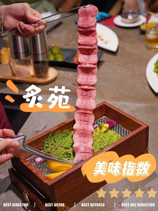 直火炙烧的和牛大赏🐂一场对味蕾的高度宠爱❣️ 炙苑不愧是日式烤肉中的佼佼者,直火炙烧优选和牛,精选美国牛肉贵宠“SRF極和牛”以及澳洲百年牧场“RV和牛”,简直就是一场对味蕾的高度宠爱❣️ 天圆地方的空间设计没有油烟侵扰,专属料理师1v1日式桌边服务仪式感满分,而传统数寄屋风格的榻榻米包厢,仿佛置身东京千代区的食肆。 🥃Aburi-en小微熏🥃3选1团购价只要40元,酒精是节日里的催化剂,让聚餐变得欢脱又有趣,炙烤鱿鱼干适合佐酒,日式翡翠凉瓜清爽解腻。 炙苑优选炭中钻石备长炭,优炭配和牛简直就是珠联璧合,在日本每月29日为肉之日,现切无量和牛最是应景,首屈一指的🥩夏多布里昂和牛菲力🥩,高温锁住肉汁水的同时,将肉脂鲜香展现得淋漓尽致。 🍱臻选和牛六拼🍱牛舌➕特选牛小排➕上脑芯➕牛三筋➕横膈膜➕牛肋条,把牛牛的精华部位一网打尽,不管是肉香十足的横膈膜,还是回味带甜的上脑芯,或是风味独特的牛肋条,都各具千秋难分伯仲。 🌮和牛海胆塔塔🌮将M9澳洲和牛牛小排切碎,均匀铺在脆香薯片上,随后加入新鲜牡丹虾肉和海胆,还有鱼子酱锦上添花,大口送入嘴中,层次丰富令人欲罢不能。 每日限量供应的🥓梦幻牛舌🥓,究竟有多梦幻❓ 炙苑只选用舌中段和舌根部,拉开以后犹如手风琴一般🥩 舌中段通常烤制5分熟,柔嫩多汁富有嚼劲,推荐搭配盐和黑胡椒,而舌根肉则是牛舌最高级部位,7分熟可以将油脂逼出,挤点柠檬汁,吃过一次便唇齿难忘~ 收藏➕打卡还会赠送可可爱爱的Aburien-金牛慕斯,吃完这道甜品说不定能牛转乾坤💰