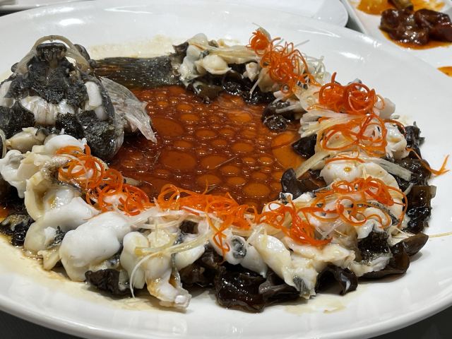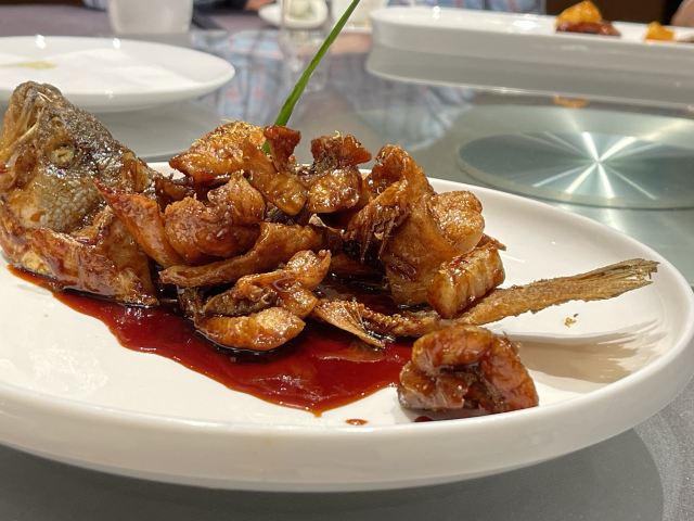 本帮菜的味道吧,然后那个鲈鱼熏鱼真的非常的惊艳,外面是吃不到,大家一定要点红烧肉粢饭糕,那个次饭糕一定要点,有点太软的,其他也没什么大问题,站反正就本帮菜吧,无功无过吧。