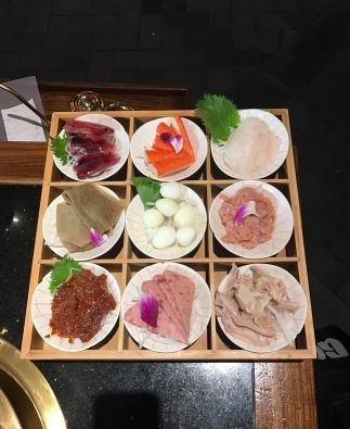 环境不错就是香天下怎么都是那种四方桌大竹椅一刹那让我享受美食的愉悦心情打了折扣,我还是喜欢沙发卡座那种感觉。好多锅底要一百多觉得也没意思,选了个菌菇小锅59元还行,菜品点了九宫格88元这种适合人少的,点了一份嫩肉不过香天下这嫩肉量实在太少切的薄如丝,48元感觉太不值了。