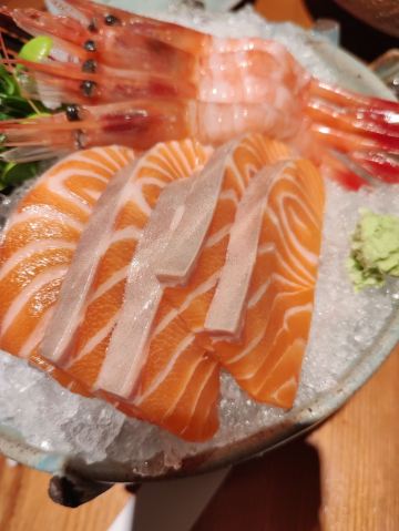 这家日料店在马桥万达广场算是人气比较旺的,周末晚餐事先预订了包间座位。可以扫码点餐或看菜单点餐。服务员态度很好,虽然人手比较紧张,但服务还是比较到位的。 刺身比较新鲜,色拉味道爽口,寿喜锅的和牛服务员帮忙烤好,汤底口感略咸,煮乌冬面正好。