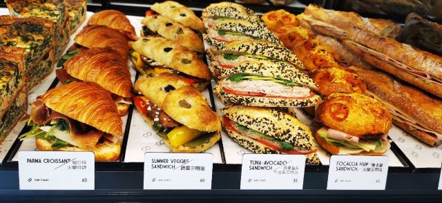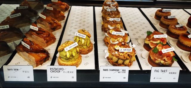开心果泡芙,迷你红酒无花果,可颂,乡村小杂粮,栗子挞,三文鱼菠菜派,芝麻小法棍,无花果挞,小玉米面包,法式法棍