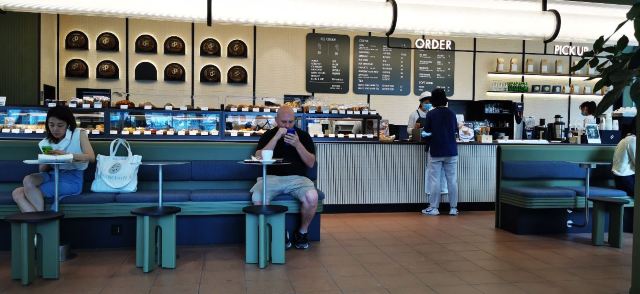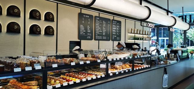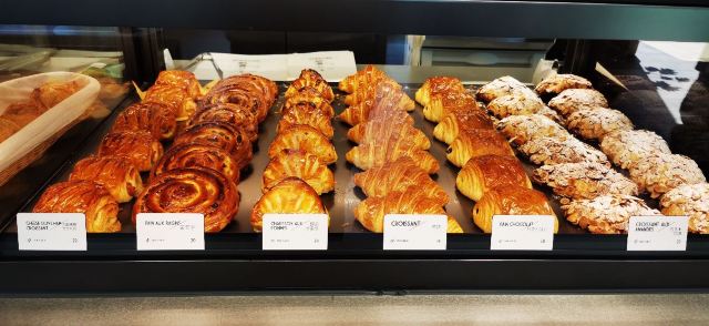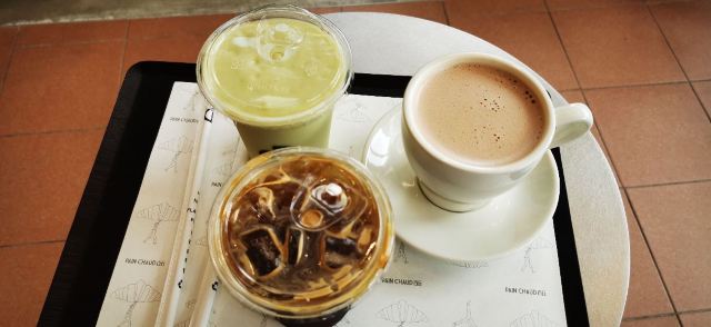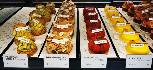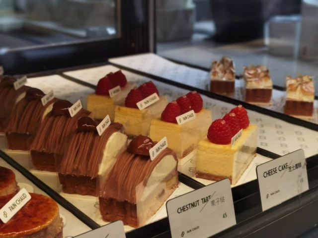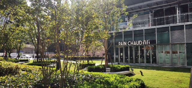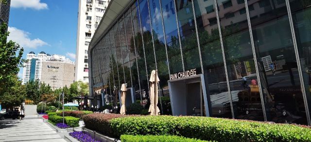 泡泡龙他爸以前经常从恭城路进交大广元西路的校门,抄近路穿过校园去新华路。最近两年没法通行了,就一直没来这里,没想到ITC TWO已全部落成,而昭平路口上第一家就是PAIN CHAUD,与GAGA,还有苏小柳为邻。空间大,层高足,面北朝南,坐在里面喝一杯的时候,阳光正好照在背上,暖洋洋的。这里面包、蛋糕品种很多,价格尚可,不比其他店贵,饮料选择也有不少,来坐坐休憩一下,或外卖带走,都很方便。门口也有一些露天位子,可惜恭城路上建筑工地灰尘还是有些大,觉得现在不适合坐在室外。生意很不错,毕竟边上就是办公楼。发票是电子的,可以和ITC ONE,IFC,IAPM合并积分
