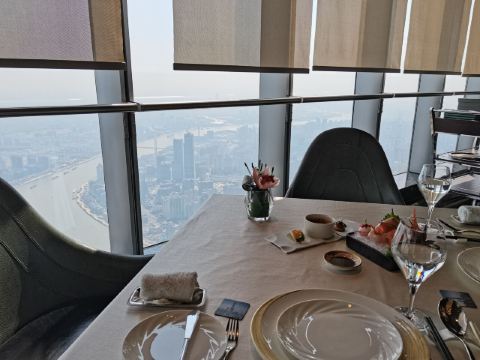 美食美味,至尊享受就在 J酒店上海中心·天之锦 Heavenly Jin ,感受一下云端魅力 🌟亮点特色: 不愧是登上吉尼斯世界纪录的餐厅哦,传统的陆家嘴三件套在他面前都是小弟弟啦!在大厅里边就可以俯瞰整个陆家嘴全貌。至尊享受哦。[Awesome][Awesome][Awesome] 而他家的菜肴更是融合了淮阳和粤菜的精致。 特别喜欢鳌虾。捞汁的做法搭配上鲜美的虾肉,咀嚼中又有回甘。 还有他家的。牛肉也超赞哦。绝对值得推荐。 服务更是没得说,生日时候不仅有长寿面,更有精美的吧台布置。 #就近旅行快乐就行 #这里的风景美如画 #美食寻味记 #我是种草官