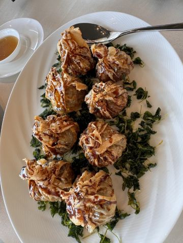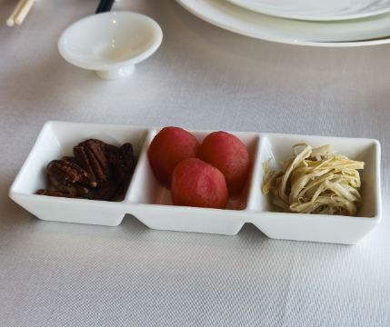 松露鲍鱼红烧肉,雪绒豆腐汤,松鼠桂鱼,淮扬白玉狮子头,招牌海鳌虾,扬州炒饭,鱼子酱,阿拉斯加蟹,波士顿龙虾,松露文火牛肉,黑松露牛肉塔塔,蓝龙虾浓汤,大西洋鳕鱼