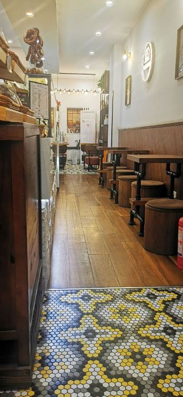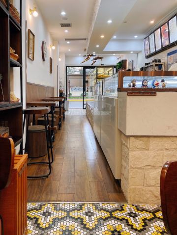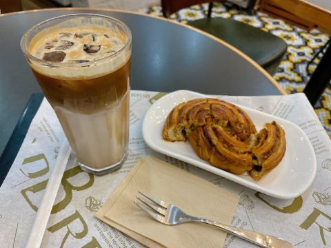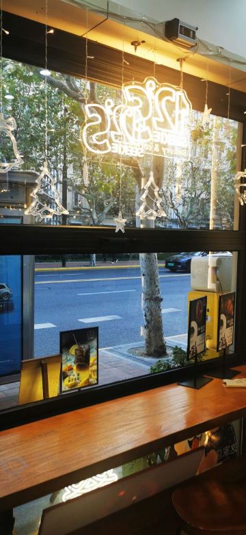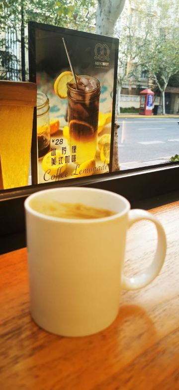 以前家人曾经从这家面包店叫过外卖,传给我的信息是连纸袋也要收一块钱一个,好贵,至于面包,我吃了已经没印象了。说是在淮海西路高安路口,印象中没觉得有这样一家店。前几天和同学去上海图书馆,先到马路斜对面的这家Abendbrot去坐一会儿,怪不得看不见,原来躲在公交站的大广告牌背后,不从门口走过,保证看不到,这个市口不容易做生意呀。看了看柜台里蛋糕面包的样子,提不起兴趣,要了杯热美式,很不错,可惜就是个白色瓷杯,白白净净的,太素了。狭长型空间纵深足,凭窗的位子也有好几个,坐着发发呆还是不错的。回来后家人说,这家面包外观不行,味道还是不错的,要求以后经过顺便捎上一两个回家