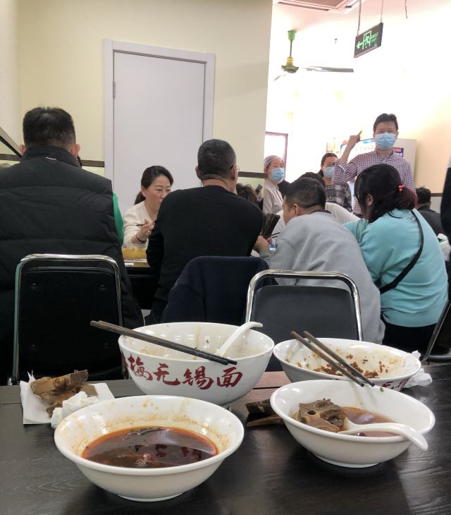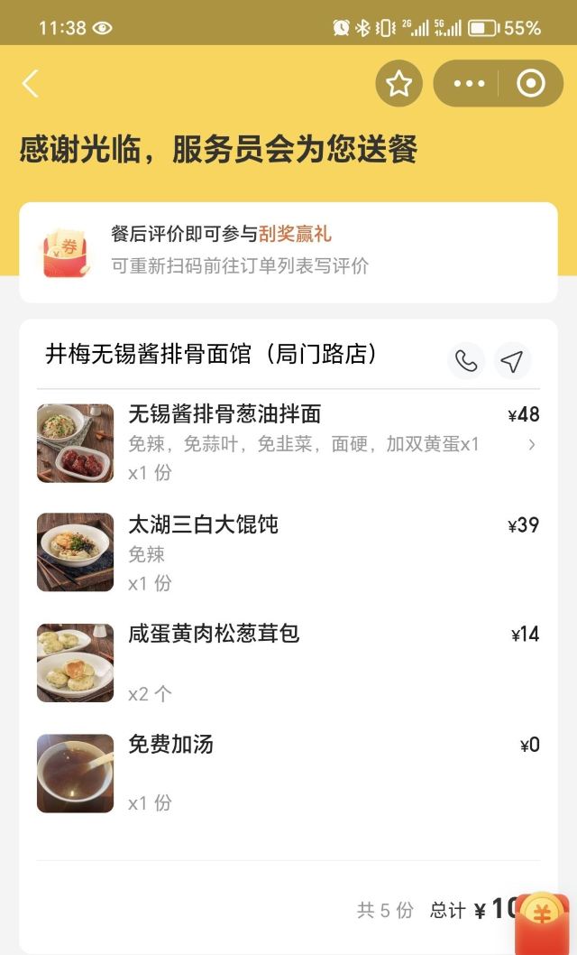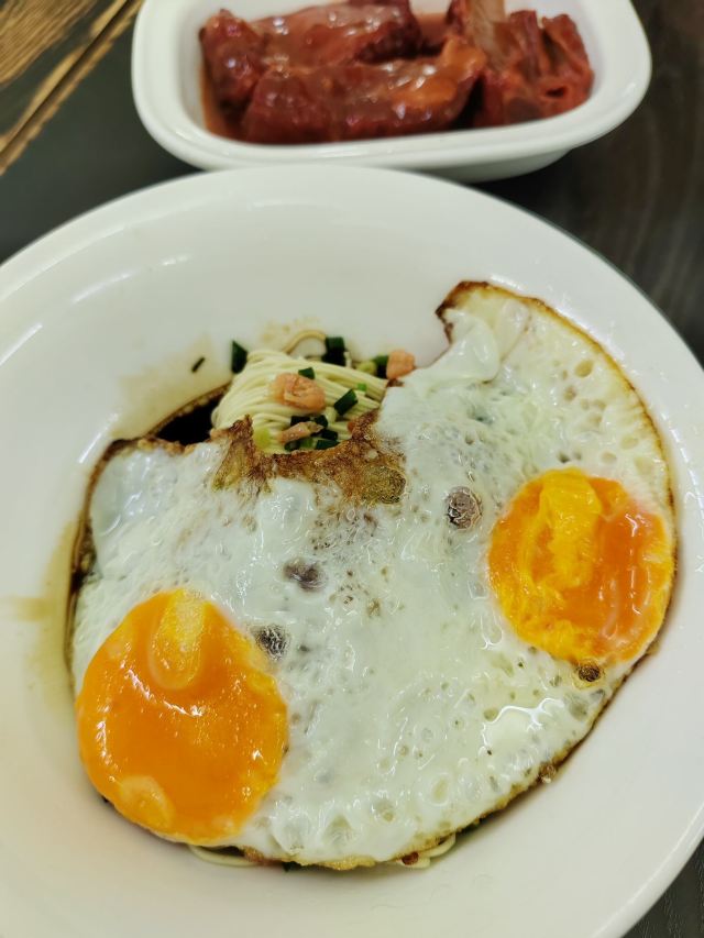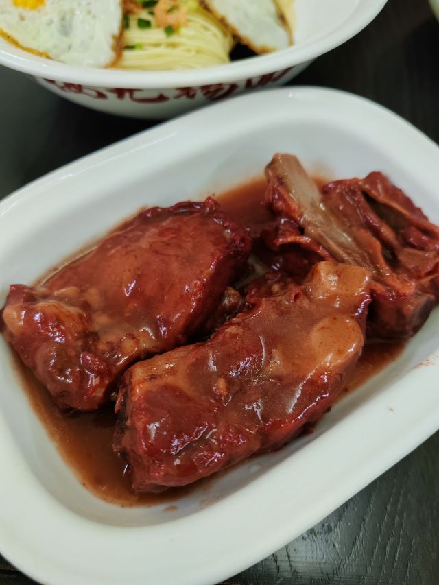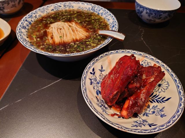 Iamis过年期间正常营业!相当地道的一家店!大大的碗,印着大大的店名! 【环境】 环境很明亮宽敞,有着自己的装修风格,很有特色。 【服务】 扫描下单,可以免费加清汤、加面,挺好的。 【口味】 「无锡酱排骨」非常酥嫩的排骨,一碗有三块,吃多了会有些油腻,第一口非常好吃。 「太湖三白大馄饨」卖相非常好看,配料丰富,有紫菜,豆腐干。里面的三白能猜出两种,可惜虾仁用的不是河虾仁。 「无锡酱排骨葱油拌面」葱油拌面里面有开洋,也是略油腻一些,第一口非常好吃。 「无锡酱排骨汤面」汤面也是不错的,汤底挺好喝。 「红豆沙」红豆沙量很足,单独来吃一份这个甜品,也是很不错的。 饭后,会有口干的感觉。