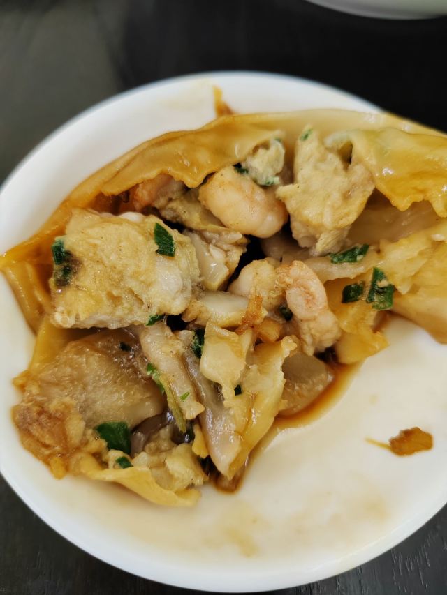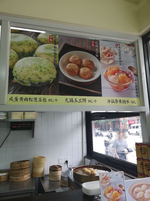 Jingmei Wuxi Sauce Pork Chop Noodle House (Julumen Road Branch)最想试的就是很少见的太湖三白馄饨,虽然只看到了鱼肉和虾,但是不妨碍它的好吃,汁水有点点甜味,对喜欢甜口的上海人大友好。酱排骨葱油拌面也可以,排骨虽然只有三块,但都是肉,而且这个酱排骨不像从无锡买回来的真空包装的那种酥烂无比,就像家里自己做出来的,葱油拌面的汁水也是有点甜甜的。最后是葱茸包,这个第一次尝试,内芯好像是咸蛋黄芝士肉松的组合体,不难吃,但多吃会腻。总体来说,错过饭点,路过,可以二吃的店。