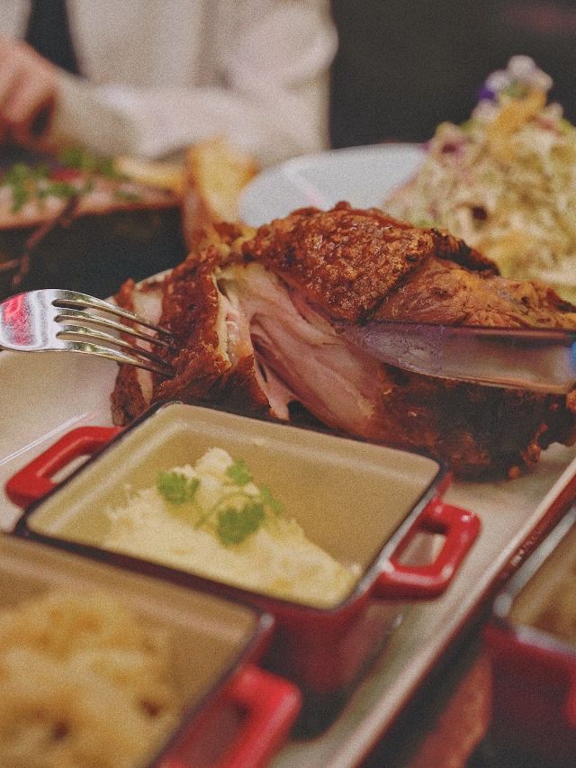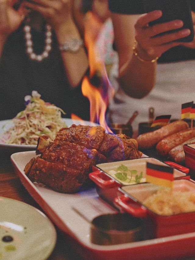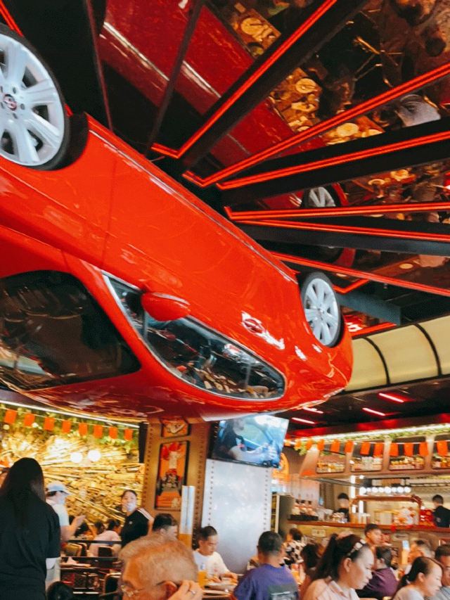 加油干饭呀恭喜正大乐城又添新丁,身价百万的网红店未开先火🚘白天是汽车餐厅,晚上是Live House,随处可见的汽车元素,现场驻唱好听到耳朵要怀孕👂 会喷火的猪肘❓可以吃的螺丝钉❓每一道菜都脑洞大开充满创意,必须让手机先“吃”📱 全场C位的🔥火焰猪肘🍖,30hr低温烹饪牢牢锁住胶原蛋白,外酥里嫩层次丰富,浇上朗姆酒仪式感满分,搭配啤酒烧汁绝绝子💯 XXXL号的德式香肠拼盘,xxxs号的手撕烟熏猪肉mini汉堡,还有酥酥麻麻的藤椒迷迭香薯条,都是绝妙的下酒菜🍻 米其林主厨推荐的低温慢煮烤鸡,10+种香料腌制12小时,就连骨髓都充分入味,外皮金黄酥脆鸡肉鲜嫩多汁,双手根本停不下对它的攻击🍴