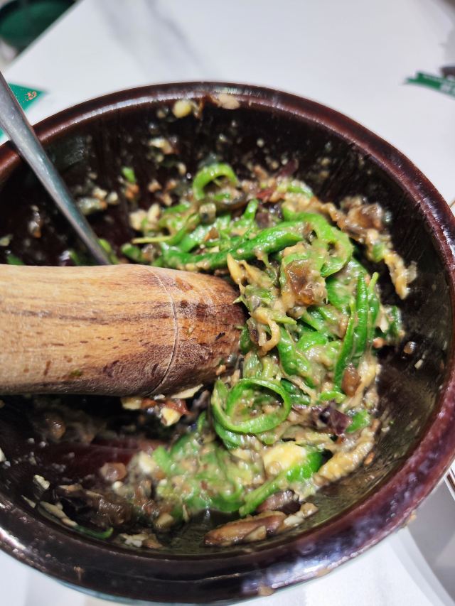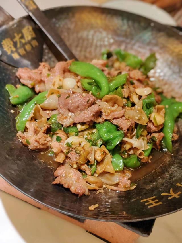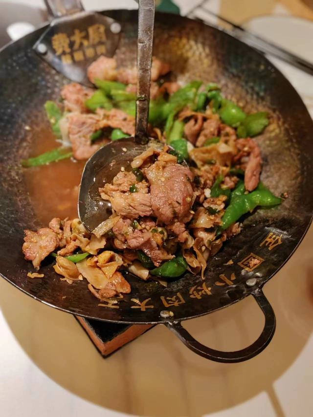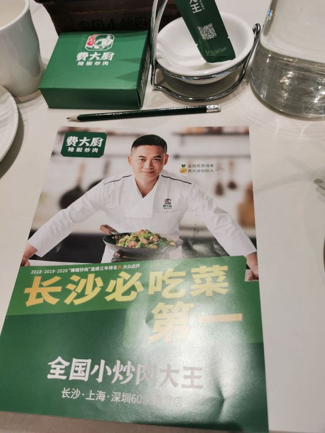 计划了好久终于吃到了这个费大厨辣椒炒肉,今天吃的三个菜都很好吃,值得推荐 辣椒炒肉是主打菜品,好吃,但个人认为皮蛋青椒擂茄子最特殊,第一次见这种菜,捣碎了吃,一点也不辣。 环境: 环境没得说,很不错,工作日中午不用排队,但人也不少,略微有点吵 服务: 服务很好,服务员也多,随时都能照顾到,上菜也快 性价比也比较高,两个人只吃了140