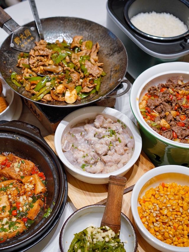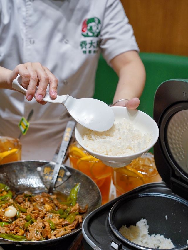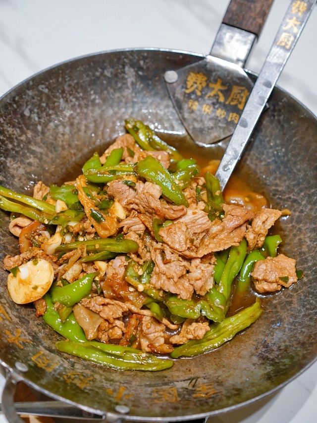 加油干饭呀去长沙要飞120分钟,去费大厨只要20分钟,足不出沪就能翻牌全国小炒肉大王,让你一筷子伸到长沙🥢 👨🍳费大厨👨🍳首创带火上桌的辣椒炒肉,大厨现炒锅气十足,刚开业就在魔都掀起排队狂潮,至今热度不减📈 年销量1000000份的辣椒炒肉,好吃秘诀就是把普通猪肉重磅升级🐖肥瘦相间的土猪前腿肉,香而不腻好吃到上头,还特别添加兔耳菌,吃过一次就会深深爱上❣️ 搭配国内最优质的青辣椒,鲜辣开胃撩翻味蕾🫑猪肉的鲜香融合辣椒的鲜辣,一热抵三鲜,还原小时候的味道♨️ 费大厨有三宝,除了人见人爱的辣椒炒肉,五常大米自然也少不了🍚一整个电饭煲端上桌,好一个霸气外露👍肉汁拌饭超级美味,猪肉香辣椒香米饭香,绝了💯 布得一桌好菜才是终极成就,费大厨可没有短板,样样都是拿手好菜。 外脆里嫩的🍗大厨手撕鸡🍗,刚上桌就抢去了所有人的目光,鸡皮油亮肉质紧实,现场手撕诱惑力MAX,不辣星人也能嗨吃过瘾~ 🍆皮蛋青椒擂茄子🍆鲜椒擂味必不可少,压榨出每一分香气,干完一架似乎更好吃了😅 辣椒炒肉党必备🍋大王柠檬茶🍋,酸甜爽口秒杀连锁茶饮铺,实力圈粉的王炸组合,解渴又解辣,一口就能还魂👻