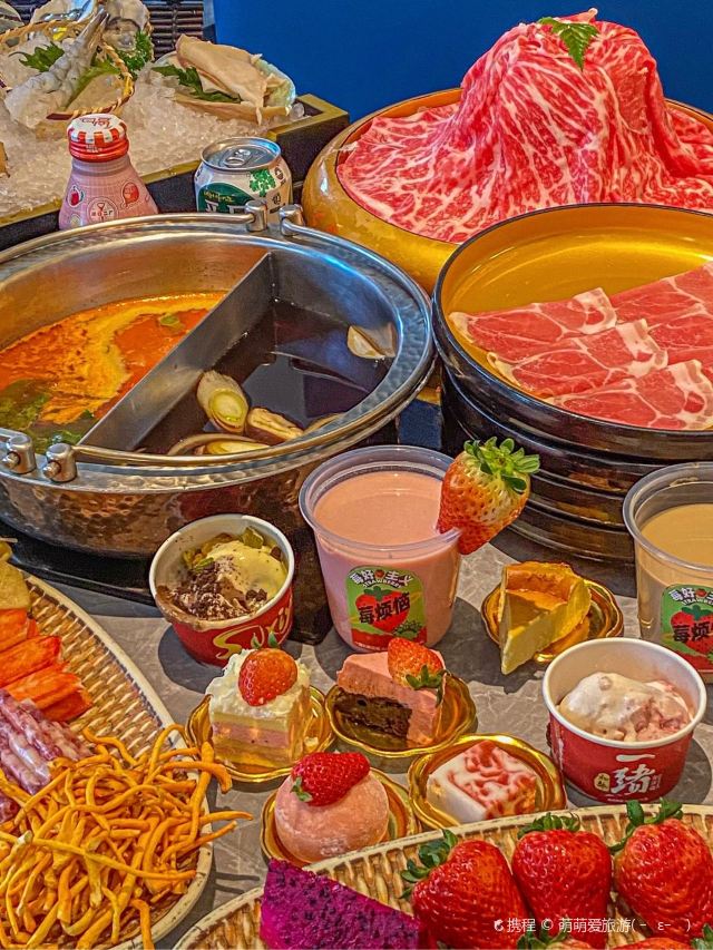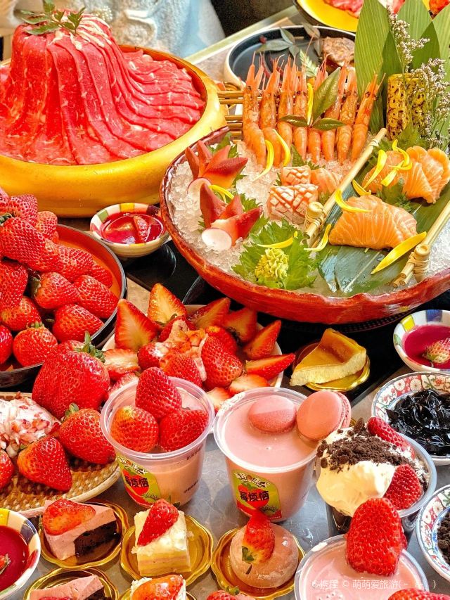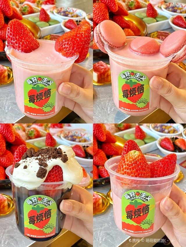 萌萌爱旅游( ー̀εー́ )真的被这个草莓自助惊喜到 随随便便拿的草莓 都值回自助🎫💰还有意大利冰淇淋🍦免费吃 好几个口味都很心动!XXXL码的草莓起码卖几百吧 居然免费畅吃 还有奶茶DIY 热红酒🍷和各式草莓蛋糕也畅吃 还有和牛海鲜刺身可以畅吃! · 🍓超大颗的XXL号草莓、9款草莓饮品、草莓马卡龙、草莓冰淇淋、草莓大福、草莓牛乳! 🍰像五花肉的雪花和牛慕斯、雪域草莓蛋糕、草莓雪山…… 🤪和朋友相约不吃到撑走不了…! 〰️ 🌈吃到超快乐的Top3! 1️⃣超大份的冰淇淋草莓!🍧 草莓堆成雪山🏔️!中间加入冰淇淋球和黑糖珍珠等!用勺子钞着吃!每个草莓都是汁水饱满,再加上冰淇淋!太好吃! 2️⃣草莓牛乳!🥛 新鲜草莓榨出来的果汁和牛乳,好香!真的很难喝到!咱就是说一个壕的大动作! 3️⃣雪花和牛慕斯!🍰 真的没想到原来是慕斯蛋糕!原味和草莓味混合,软软绵密口感!我可以吃5个! 139r就能实现草莓自助自由,超过瘾的!自己去超市买草莓,没买多少也要99r了! 219是8⃣️种和牛畅吃➕8⃣️种季节限定海鲜拼盘畅吃➕极上刺身拼盘 我喜欢吃牛肉朋友喜欢吃刺身 就选择这个啦✅ 🏠店名:一緒に寿喜烧(长泰广场店) 🔥地址:祖冲之路1239弄1号长泰广场10座2F04室(麦当劳楼上)#自助餐攻略 #当地才能吃到的美食 #夏日美食探店 #当地才能吃到的美食