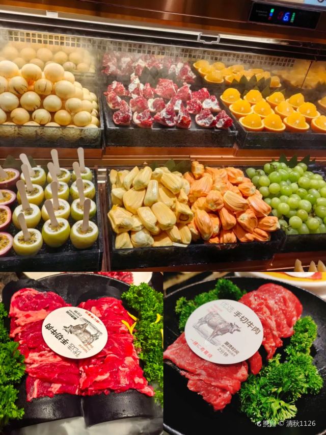 M9澳洲和牛,雪花牛上脑,焦糖布丁,M6澳洲和牛畅吃,黑虎虾,男朋友剥的虾,海鲜拼盘,刺身拼盘,生椰拿铁,牛乳生巧,螺鲍鱼片,大红袍鲜奶茶畅饮