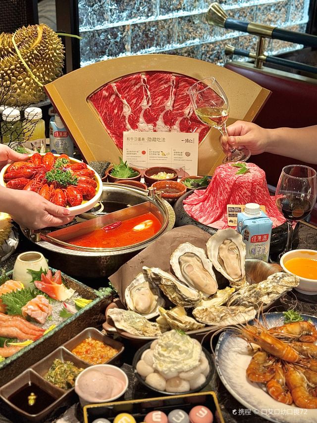 瓶子yaran年底尾牙的排面儿是一绪给的! 最近经常熬夜加班,年底真的忙晕,一个月没好好吃饭了! 尾牙来一绪报复性吃饭!!! 真的太丰富太过瘾了!爽耶~ 🥇黑鱼籽佐金砖鹅肝 鹅肝冰凉丝滑,像冰淇淋在嘴里融化~甜甜的味道里夹着一丝鹅肝特有的香气,真的好好吃! 🔥蒲烧鳗鱼 外皮焦脆里面软嫩,鱼皮甚至黏黏糯糯的……裹上上鳗鱼酱汁,好吃哭~ 🔥整房现烤榴莲 冬天真的会反复爱上烤榴莲!烤过的榴莲真的香迷糊了~一口下去直接打开新世界的大门 🥩M8-9和牛 M8-9和牛独特的纹理如同大理石,脂肪分布均匀,为肉质增添了丰富的层次感。 口感细腻如丝,紧实而不柴,轻轻咬下,肉汁在口中迸发,带有淡淡的奶香和油脂的香气,仿佛舌尖上的一场温柔风暴! 水果当然是另一个胃了! 🍒车厘子 摆好盘端上桌的车厘子!个个圆润饱满,一口爆汁酸甜可口! 🍓草莓 在外面几十块钱一斤在一绪的取餐台上随便吃!!一点不酸,特别清甜,特别解渴直接当水喝了! #刷爆朋友圈的网红店 #排队也要吃的火锅 #自助餐攻略