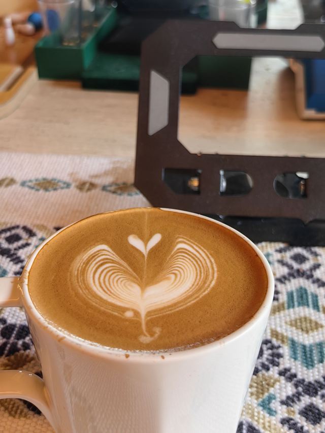 3月末 终于 气温升到了20° 阳光明媚 春花烂漫 又到了最适合出行的日子了 周末的巨富长 哪儿哪儿都是人 拍照的小姐姐 好看的小哥哥 本想打卡几家咖啡馆 奈何都是人 找了一家相对人少的 排了一会儿 等了一会儿 总算是坐下了 店铺不大 人气很旺 刚到下午已经排到了一百号 这边日咖夜酒 530结束下午场 店里有特色的当季限定 别说 做的都挺好看 点了常规热拿铁 口感顺滑 总体还不错