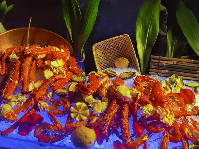 意式奶冻,鳗鱼饭,椒麻鲍鱼,桂花鸡尾酒,西式散茶,美式咖啡,巧克力挞,新鲜生蚝,精选海鲜拼盘,秘制炸香辣脆皮虾鸡翅,鸡翅,黑蒜烤生蚝,日式鳗鱼饭套餐