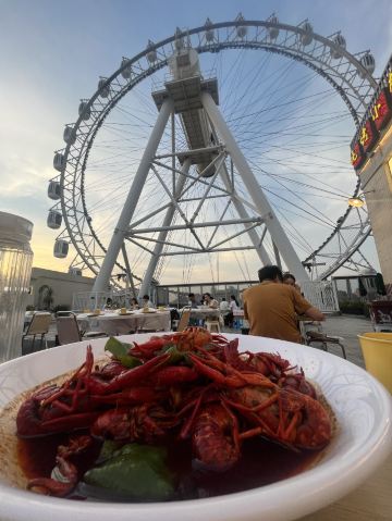 加油干饭呀摩天轮下吃大排档🎡够野够浪漫💕 魔都首家天台大排档刘栋梁,既然能开到大悦城摩天轮下,绝对不只路子够野,出品也很狂‼️重庆老师傅掌勺的火爆系列,份量就跟辣度一样惊人🌶️ 🦞冰镇小龙虾🦞无疑是今夏宠儿,满满一大盆自带仙气隆重登场,冰爽鲜嫩米道叫怪嗲,酒香浓郁一口入魂,别拦我,我要报!复!性!吃!龙虾! 🌶️超级毛血旺🌶️一锅容四海,🈶️火腿、牛百叶、鸭血、黄喉、牛肉和牛骨髓,每一样都麻辣入味各显神通,即使被辣逼出了泪花,也舍不得放下手中的筷子好嘛🥢 辣得面红耳赤的时候,猛吸一口💚绿豆刨冰💚,绝对比心肺复苏还给力,刨冰十分爱,绿豆占一半,边挫边喝超级过瘾,一秒重回小时光👏 原来刘栋梁门口的外摆位,才是观光天台的绝对C位✔️市井风大排档也可以浪漫满分💞 牛郎织女们快来摩天轮下约会吧💃🎡🕺 刘栋梁大排档(静安大悦城店) 📍西藏北路静安大悦城北区9楼N906