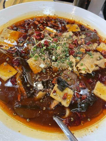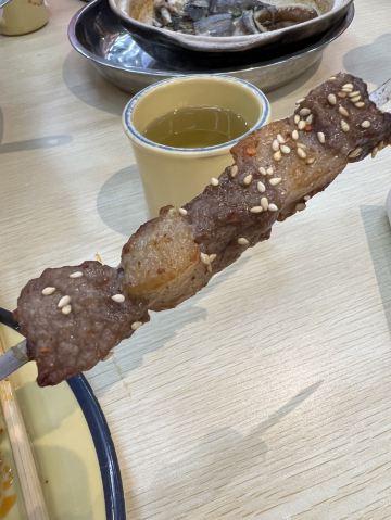 Randy摩天轮下的我在吃着串,摩天轮里的你看着我吃 烤串,为啥不能在摩天轮里吃烤串,这是一个好 问题 加班到蛮晚的,21点左右来这里吃晚饭,电梯上来就闻到他家的烤羊肉串的味道,不过本来安排 不是吃这家,结果另一家排队太长了,这家比较大就没啥排队,就来吃了。 门口有透明球就在摩天轮底下,往室内进去感觉 是70-80年代的食堂风,用的是搪瓷的餐具,不过这种风格也蛮多了,就当回忆一下了。 有套餐,其中 二超级毛血旺 真的是大,两个人吃蛮饱的,最后血旺还打包了。另外点了几个串串,味道算中规中矩,没啥特别惊艳的。 性价比还是可以,人均不贵,宵夜很好。