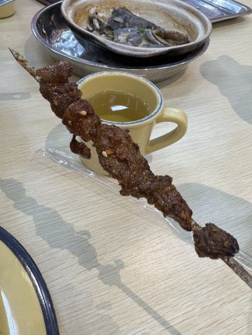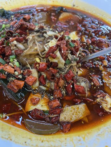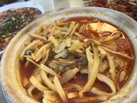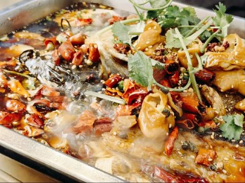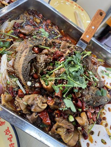 跟这家有点不对付 几次路过都错过 愣是没吃上 这次特地约了朋友过来打卡 也算是满足一下小心愿 记得夏天来的时候 露天位都坐的满满当当 这会儿天凉了 来吃排挡的人也少了 室内都不用等位了 点了份烤鱼 我看很多桌都有点 还有肥肠 比较江湖气 谈不上惊艳 但也不踩雷 服务还挺热情 不过不够细心 开个可乐快喝完了才发现瓶子里有沉淀 然后整个人就不好了
