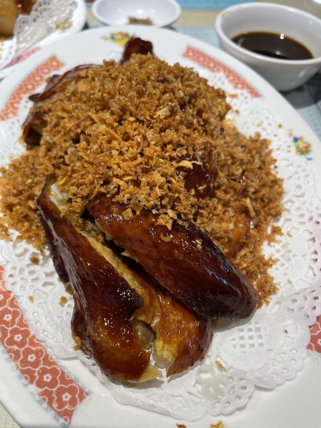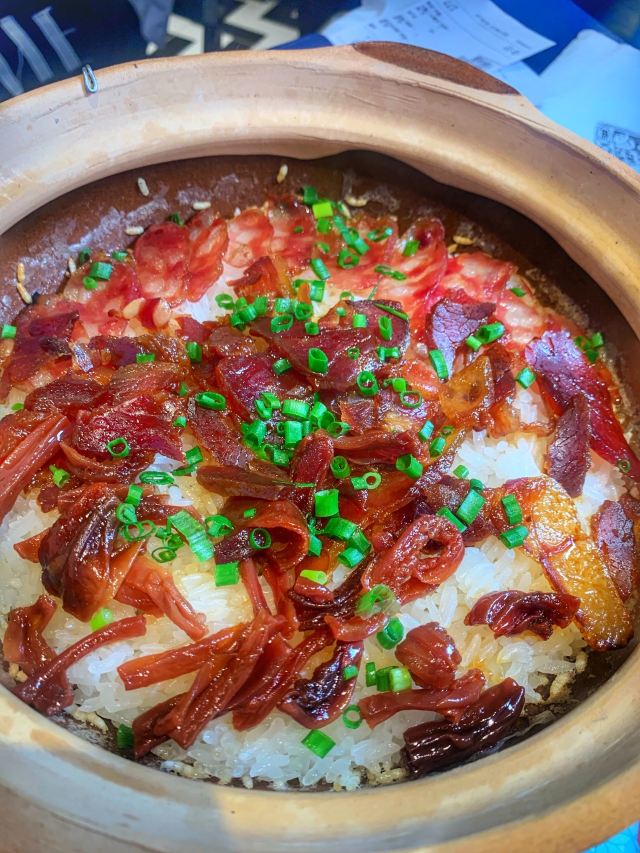 庙街风沙鸡,细记清汤南,腊味鹅肠煲仔饭,鸡油炒豆苗,榄角冬菜笋壳鱼,梅头叉烧,牛奶巧克力奶冻,港式烧腊双拼,元朗碗仔翅,青花椒大黄鱼