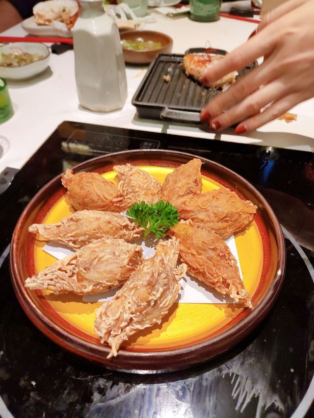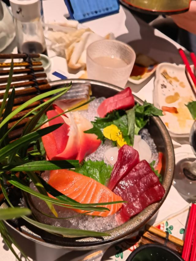 焦头烂额的小草妈2021年的12月30日我们部门的尾牙宴,选在这里啦!环球港二楼中庭的上井日料,生意很好,因为我们一行18位所以提前预约了半包的座位。面积不大,我们九个人坐的是两张方桌拼的,稍微有点挤。 海胆^味道不错嫩嫩的没有腥味 刺身拼盘^可以自由组合的,每位送半只小青龙,三文鱼是必点的,它家的螺肉不错 蒲烧鳗鱼^这个鳗鱼有点腥,所以我没有吃 厚切牛舌^厚度和做法都不错 和风熏牛肉^这道菜是大家所爱,一上来就光盘 酥炸榴莲^这是我喜欢的,就是外面的裹的面粉有点厚实 桔气弹^这里的各类饮料,应有尽有大人小孩都会满意 黑鱼子芝士苏打饼干^最后店长何先生还给我们上了鱼子酱,祝我们新年快乐! 非常感谢,也祝他们生意兴隆,财源广进!