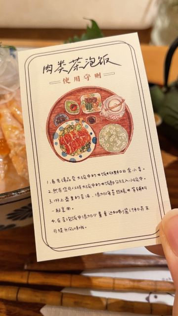 🍽【美食攻略】 📍详细地址: 愚园路471号 🚗交通攻略: 地铁2/7/14号线静安寺站13号口步行约10分钟 🕙营业时间: 11:00-21:00 🍽推荐菜品: 各类茶泡饭,茶泡饭分为两大类,肉类和鱼生类,在食用方法上会略有不同,每一份套餐上周,都会配一张精致的食用说明,非常用心。 茶泡饭属于清淡口味,加入茶汤之后更多了一份清香,可以加芥末或其它调料提味。 冰激凌也不容错过,奶香味十足。 🖼餐厅环境: 餐厅从外到内都很日式,就连空间也很日式,因为真的很小,但布置很用心,无论是门口的摆设还是桌上的小摆件,都让人喜欢。 中午人会特别多,因为基本都是来吃工作餐的,所以不想排队,可以适当避开高峰。 🍲如果你也喜欢茶泡饭,那么一定要去吃哦!