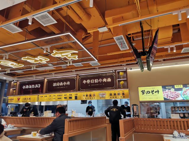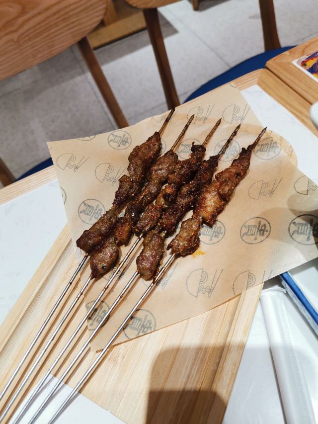 【位置】汇阳广场一楼沿街,靠漕溪北路这一头,很显眼。 【环境】黄偏橙的天花板,反射出暖暖的光,大冬天的,很友好。木质桌椅、几束金黄麦穗的点缀,有了大西北的原生感。唯一不好是一旦有客人进出忘了关门,冷风就灌进来,这是街面房的缺陷。 【服务】小伙子们特别温柔,关注着每一桌客人是否有需要。一进门,先上热热的红枣茶,这是大西北的待遇了。然后和你确认面型、辣度,提醒可以自己加辣,可以免费加面。 【口味】 -牛骨清汤牛肉面:尝试了细面,然而,下次我还是吃回男友力爆棚的二细吧。细面没那么有劲道。当然,兰州的面,再细也不糊,根根分明,汤也不会混,这点依然很棒。牛肉切的比兰州小一点,一碗六七片,平均大概三四平方厘米吧。还是很良心滴。牛肉有点酥。 -钢钎羊肉小串:有点难扯下来。羊肉不膻,但也比较酥软。 -凉拌木耳:微辣,爽口。