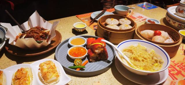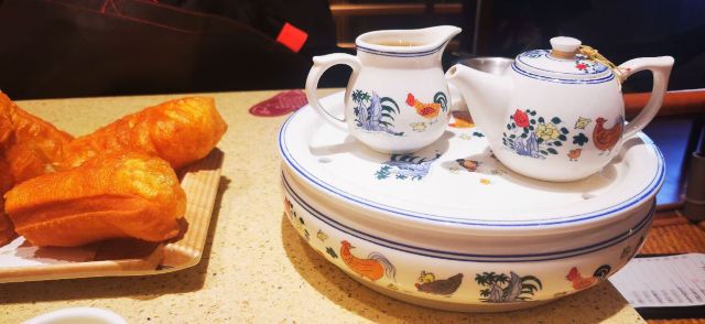 点都德上海的第一家店,大概是在中海环宇荟吧。记得好几年前看到同学在家里网上拿号,前面都有几百桌,等差了一百桌再出门也不迟。去中海环宇荟的时候也见过人山人海的排队景象,不过前两年在北外滩白玉兰广场看到点都德时,已经没这么喧闹了。我是最近才有机会去尝试了一下,朋友们和家里领导曾去吃过一次太阳宫的分店,评价不错,这才全家周末出门前往。直升电梯出来就是点都德,十点半之前来没问题,平时估计十一点就要排队拿号了。空间不算小,座位宽舒,扫码点餐,先和小哥选好喝那种茶,小哥会来洗杯暖壶泡茶,水壶也在边上一直保温着,确保能喝到温度适合的茶水。第一次随便选了一些点心,姜蓉芥兰意外出彩,后来明白这个品种要三月上旬来吃,再晚就会变老。可口的点心,不油腻,价格也比较适中,怪不得前几年生意这么好