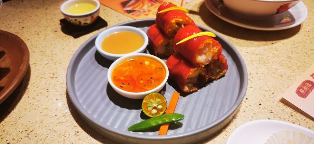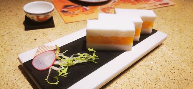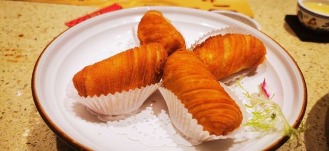 泡泡龙他爸再来一次,是因为小浆糊还想再吃一次西杏片炸鲜奶。可能临近清明来的人稍微少一点,意外的空,到十一点半后才需要取号排队。这次口味独特的是灌汤姜汁小笼包,似乎其他地方不常见。香芒夹心椰汁糕冰的比较厉害,夏天来享受更合适。吃到传说中巨胖无比的招牌靓油条,蘸一点酱油,可以有效去除油水,不过这种食品还是不能吃太多,偶一为之。总体来说吃的挺满意,量也不小,性价比不错,也不是很喧闹,说说话没问题。结账要自己去帐台,有第三方平台可打折,发票是电子的,就是商场积分需要门口乘自动扶梯上五楼服务台手工积分,要转半个商场,不熟悉的还不太容易找到。另外,洗手间也离餐厅稍微远了点