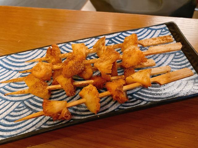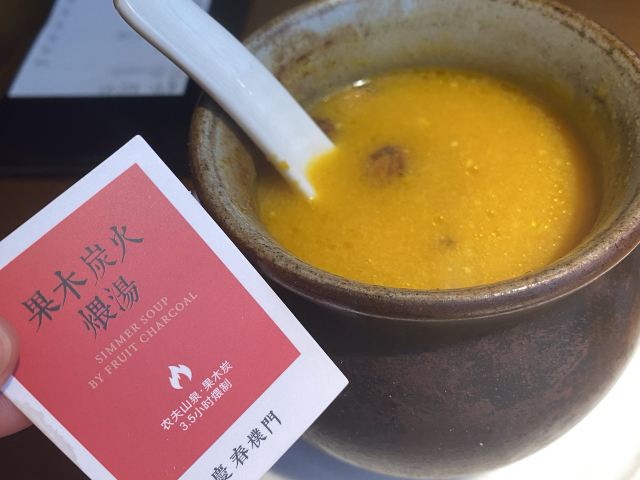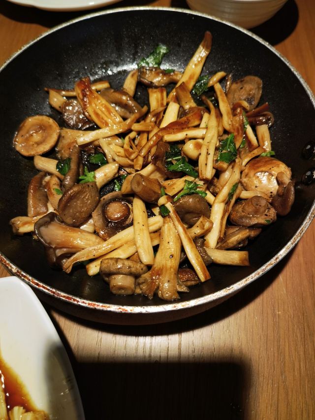 工作日中午11.30到店还有位置,不过也已经有很多很多人了,座位间隔超级小,左邻右舍说话听得一清二楚,只适合吃饭,不适合聊天。 孜然烤串味道很新奇,三种蘑菇太油了,羊肚菌汤很醇厚。 荔浦芋头吃出喜茶芋泥的感觉,就是分量有点少。 最喜欢榛果糙米浆,之前看点评有人说很难喝,但我觉得味道十分的棒,香且不甜,榛果味道浓厚,喝了一壶不过瘾又点了一壶。
