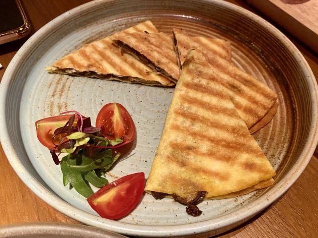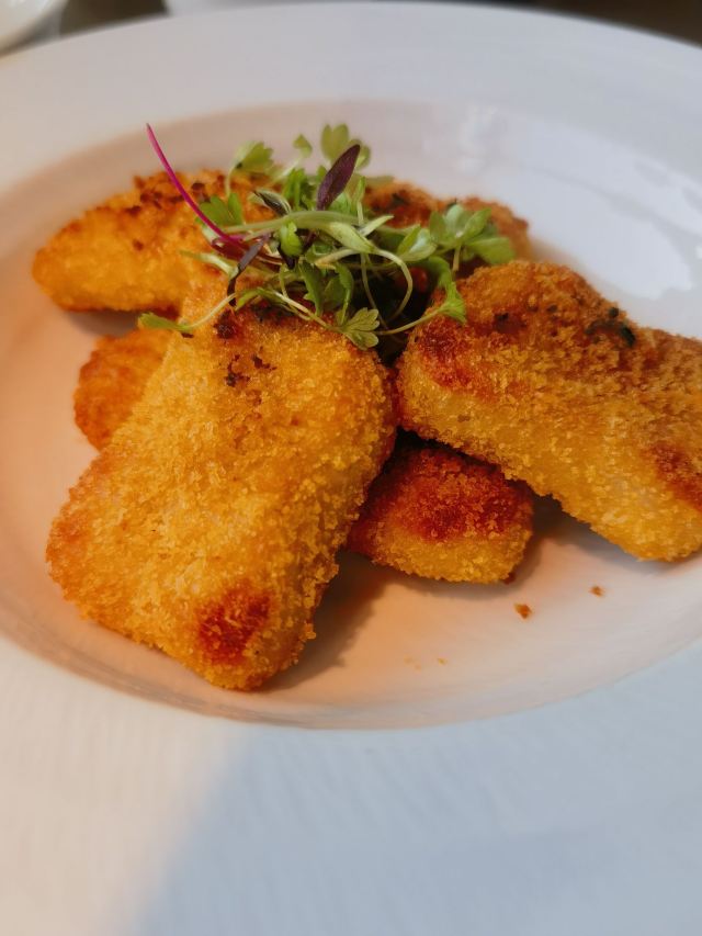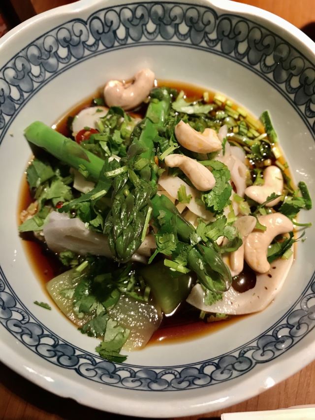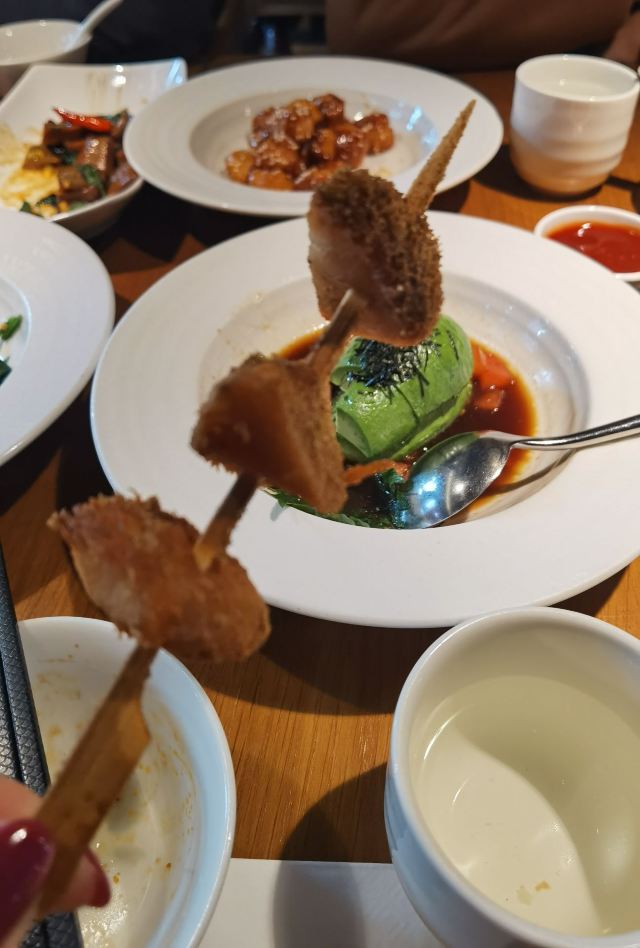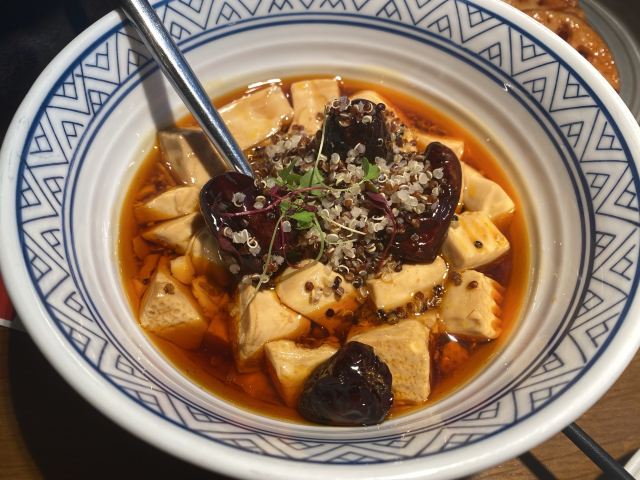 和大半年没见的基友们约饭,约在这家前滩太古里最近很火的素食餐厅。朋友大概傍晚六点多到的,结果前面还有十桌要等,可见生意有多好。一共点了六个菜,都算可口,其中「孜然烤串」和「香草素鸡块」肉感十足,的确足以乱真。「桂花荔浦芋儿」口感很清甜,「藜麦椒麻豆腐」和「黑松露炒饭」比较咸。价格也不算贵,我们菜点得不多,再多点几个人均大概也就100左右。