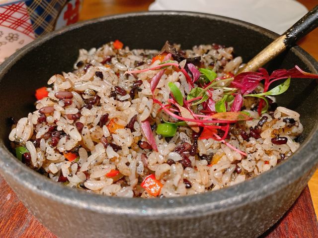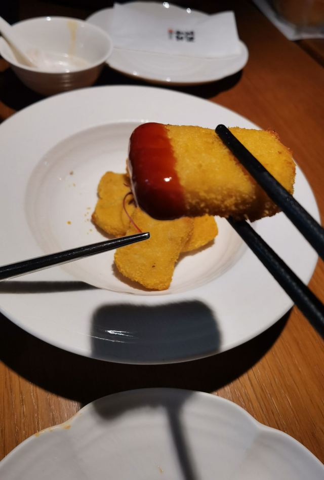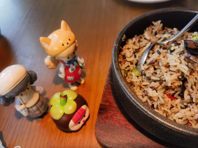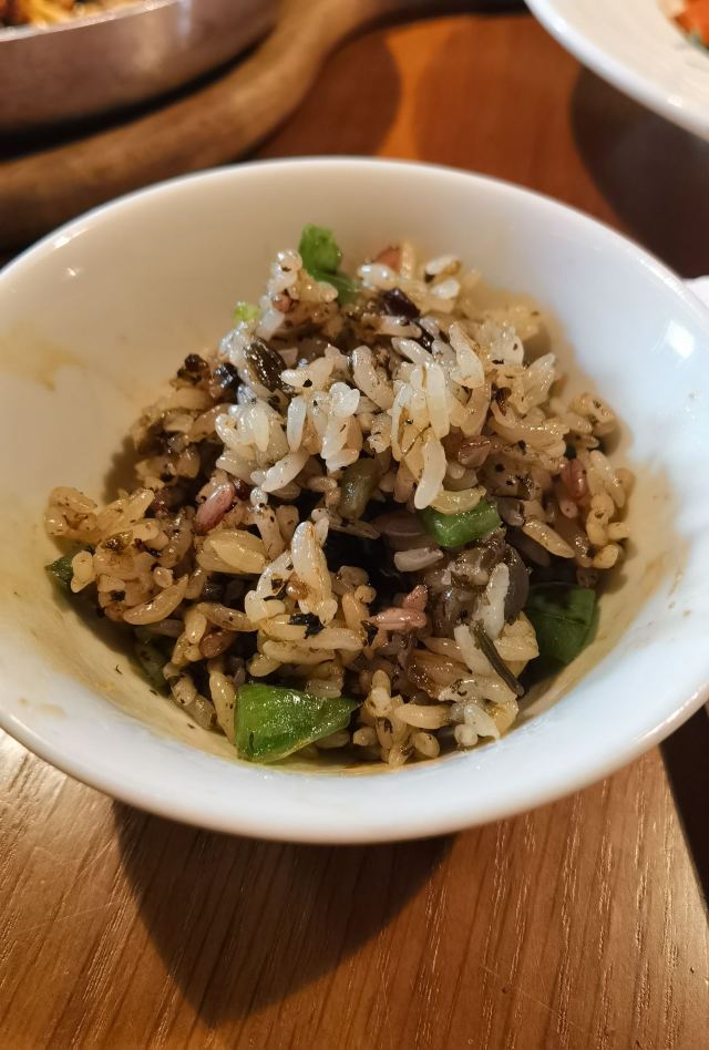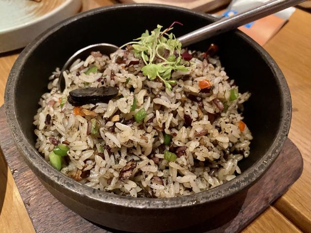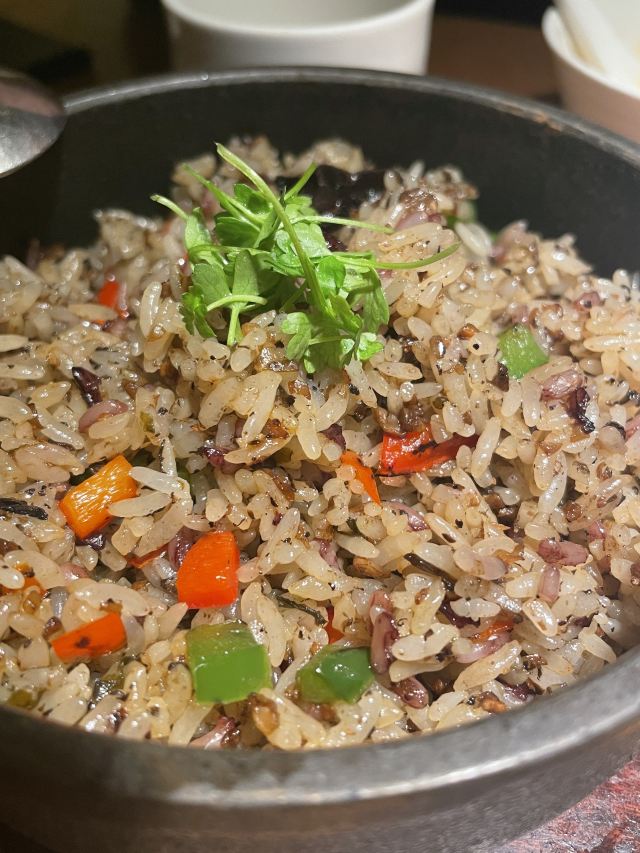 姐姐选的店,非常优秀!偶尔吃素非常好。 上菜速度挺快,服务不错。 黑松露炒饭好像是每桌必点,我是主食控,肯定爱吃啊,放了桌上的调味料酱油更美味。 香草素鸡块是上校鸡块的口感,本场最佳? 桂花红糖年糕普通但也好吃。 铁板炯笋排好吃,辣的,也好吃。