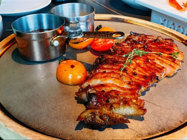 跟球友打完球 来周边觅食 运动过后其实也没太大食欲 想着找个环境好点的 出品好点的 于是找到了这家小大董 餐厅位于久光中心5层 入口处还挺有设计感的 弯弯绕绕的 里面环境还是不错的 听名字就知道 小大董是大董的延伸品牌 所以菜品里也有很多大董的影子 花小大董的钱 品出大董的味道才是真门道 烤鸭是必点的 每个来大董小大董的基本不会错过 不过我可能属于例外吧 对北京烤鸭总觉得仪式感才是精髓 看着比吃着香 倒是那盆猪颈肉做的入味三分 最后那个冰爽的焦糖冻柿子倒是很惊喜 现在这天气 吃起来真是太爽了