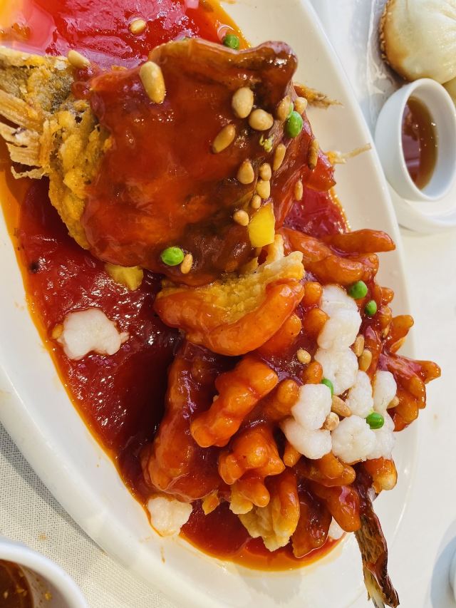 清炒虾仁,招牌红烧肉,招牌生煎包,脆皮鲜奶拼蚝油牛肉,响油鳝糊夹饼,松子桂鱼,糖醋排骨,老北京烤鸭,招牌水晶鸡,香焗百合