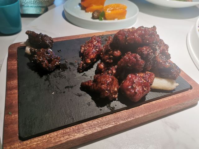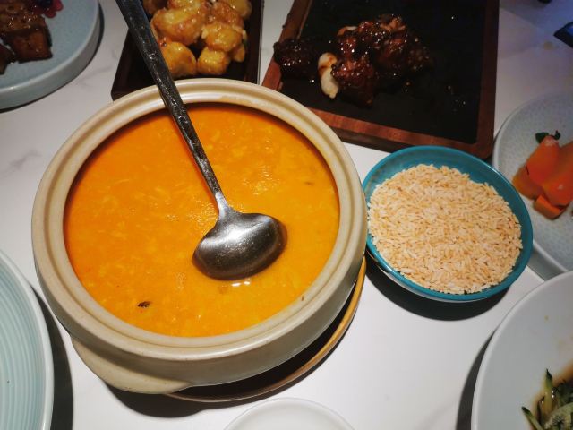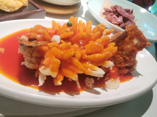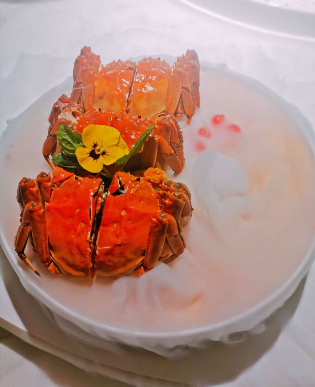 【环境】 餐厅位于宝山区彭浦新村附近。新店开张,装修的非常华丽,像置身花园中就餐,。我们是坐进门的亭子里,8个人略显拥挤了。 【服务】 服务员服务态度很好 【口味】橙香牛仔粒,超级嫩,入味 六月黄,这道菜应该叫熟醉蟹,味道醉的很好,颜值也高,推荐 这家餐厅的性价比很高,菜的颜值口味都不错,推荐!
