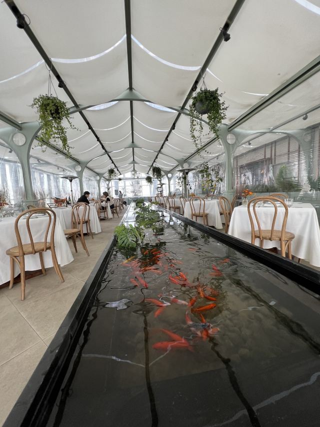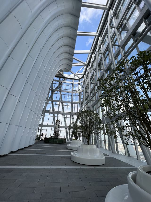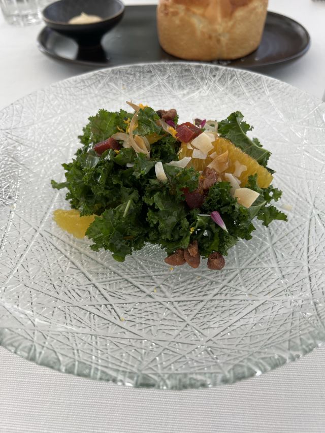 Randy前滩太古里开了近一年,前滩中心也差不多吧,蛮早就种草了这家,正好来拔拔草。 定位很客气,加了我微信后发来了详细的定位确认函,还仔细用图文一起描述了不同方式如何抵达,尽管如此依然还是出现问题:开车用确认函中的定位是准确的,但是用同名的“前滩太古里石区停车场’到导航软件中搜索会开到相距 200米左右的另一个石区停车场,而且两个石区是不通的。记佳一定是选择前滩中心对面的石区停车场入口才是正确的。 地下车库也是蛮大的,找入口也要花费点时问。 到42层换乘区域的光与盐的饮品站,会有服务人员引领到顶楼的这个餐厅。 环境: 是属于光与盐的高端餐厅,整个一层楼就这么一间餐厅,层高非常高,而且都是钢结构和玻璃,晴天视野非常开阔,3/4区域是楼顶花园,只有1/4区域是餐厅,估计太大太空阔,所以餐厅额外用帐篷再遮挡了一下,否则空调完全就没有用。 晴天从楼上看上去视野非常开阔,因为周边的确没啥其他高楼,感觉一下子心胸开阔。 工作日中午没什么人,我们到了后不久,另一桌也吃完走人了,结果就变成只有我们一桌了,不错,包场了。 服务: 服务还是很仔细认真的,从预定开始就能感觉到,上菜需要二次加工的烤鸡啊、饭啊,都会先展示再加工,一道道上节奏把控不错,及时和顾容沟通,满足顾客需求。 菜品 午市有套餐,性价比很高,这个环境就值了这个价格了。而且光与盐的出品还是蛮有保证的。 套餐里面基本都不踩坑,特别是 招牌烤春鸡(整只) 果然是招牌,在我吃过的店里也绝对排名前列,鸡肉嫩滑多汁、鸡皮脆香,让人眼前一亮,出人意料。 吃完可以拍拍照,逛逛坐坐聊聊天,人少任性玩。