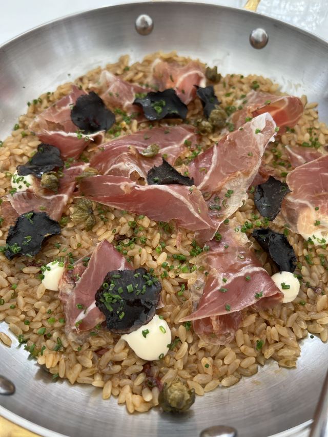法国吐司,火箭鱿鱼和西班牙佐立口香肠,烤春鸡,伊比利亚火腿烩饭,马赛鱼汤火锅配手工面,羽衣甘蓝香橙色拉