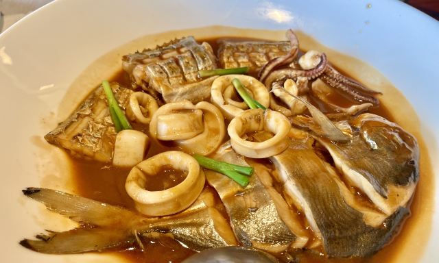 秋季餐厅周评价还不错的一家,探店下来确实还行。 餐厅排场挺大,办酒席绰绰有余,停车就在门外自家的场地,挺方便。餐厅服务也到位。 菜品方面,主打浙江菜,口味清淡,以海鲜为主,套餐里还有一份红烧肉,不过一人只有大小适中的一块😝