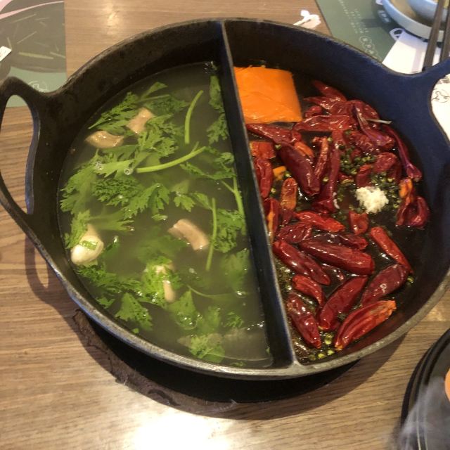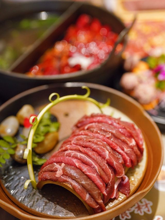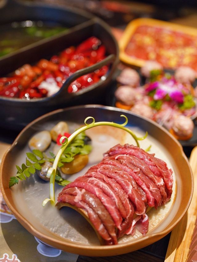 尽膳口福跷脚牛肉火锅开到AI PLAZA来啦👏工作日晚上9点还在等位的必吃榜火锅,顶流实火🔥 两全其美的🌿草本鸳鸯锅🌶️,精神四川人的DNA动了‼️辣锅选用的是干辣椒加老鹰茶,吃完以后不口干不上火,大牛骨汤熬的草本锅底,待汤滚后放入晶莹剔透的牛蹄筋冻,喝一碗原汁原味的养生汤,这滋味绝了 自带仙气buff的🥩九秒牛肉🥩,色泽红艳悦目,油花浓香袭人,一秒不多一秒不少,9秒涮肉又嫩又滑恰到好处,蘸上五彩干碟更是口感升华📈 外脆里糯的🧡红糖糍粑🧡,软软糯糯的神仙口感,不仅一口爆浆还可以拉丝哦,金黄脆皮挂满红糖酱汁,趁热食用风味更佳 🍨三鲜冰粉🍨你确定不是三“仙”冰粉嘛?里面🈶️酒酿枸杞银耳红豆小圆子,仙气十足的饭后甜品,恰好可以解辣哟 最后必须夸一夸小寒的服务,简直令人如沐春风,还赠送了手工牛轧糖🆓 目前店里有超给力的团购套餐,午市特惠双人餐只要¥299,家人们快冲鸭💃