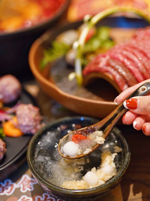 加油干饭呀尽膳口福跷脚牛肉火锅开到AI PLAZA来啦👏工作日晚上9点还在等位的必吃榜火锅,顶流实火🔥 两全其美的🌿草本鸳鸯锅🌶️,精神四川人的DNA动了‼️辣锅选用的是干辣椒加老鹰茶,吃完以后不口干不上火,大牛骨汤熬的草本锅底,待汤滚后放入晶莹剔透的牛蹄筋冻,喝一碗原汁原味的养生汤,这滋味绝了 自带仙气buff的🥩九秒牛肉🥩,色泽红艳悦目,油花浓香袭人,一秒不多一秒不少,9秒涮肉又嫩又滑恰到好处,蘸上五彩干碟更是口感升华📈 外脆里糯的🧡红糖糍粑🧡,软软糯糯的神仙口感,不仅一口爆浆还可以拉丝哦,金黄脆皮挂满红糖酱汁,趁热食用风味更佳 🍨三鲜冰粉🍨你确定不是三“仙”冰粉嘛?里面🈶️酒酿枸杞银耳红豆小圆子,仙气十足的饭后甜品,恰好可以解辣哟 最后必须夸一夸小寒的服务,简直令人如沐春风,还赠送了手工牛轧糖🆓 目前店里有超给力的团购套餐,午市特惠双人餐只要¥299,家人们快冲鸭💃