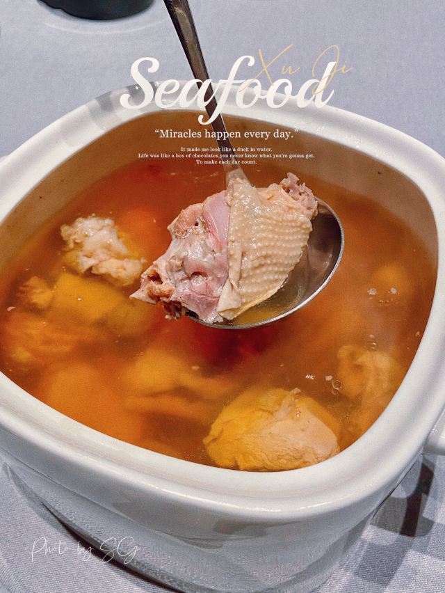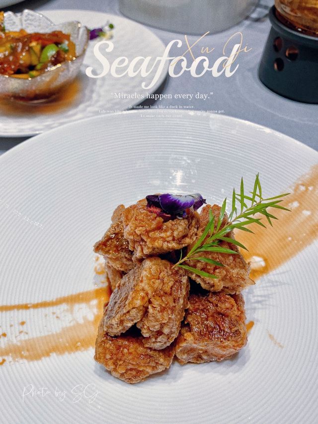 史先生与黛小姐徐记🦞海鲜餐厅🦐,自从上次霸王餐体验过后,觉得非常满意💯,这次来二刷。 👨🏻🍳从进门那刻开始,仿佛开启了一键服务模式,引位,对菜品忌口征询,茶水等,服务员全程在线,没有一丝怠慢。 🐟老上海熏鱼🐟 老上海对熏鱼的刻板印象是河鱼,这次竟然吃到银鳕鱼做的熏鱼,那特有的奶香,汁水特丰富。强烈推荐❗️ 🦞盐焗小青龙🦞 鲜活的小青龙现做,肉质Q弹鲜美,味道浓郁,非常好吃😋 🫕特色脆米海鲜粥🫕 必点的一道菜,粥量大且食材内容丰富,还放了脆米和油条,简直好喝到没朋友。 🦐椒盐对虾🦐 炸的晶莹剔透,连整个外壳都直接吃。评价这道菜的美味,不止食材新鲜这一纬度,更多的是厨师的手艺。 🌰招牌核桃包🌰 核桃包是流心的,不是很甜,超级好吃😋 🍊自助餐吧的水果是可以按需自取的,当然服务员见到水果光盘也会立刻为你补上。