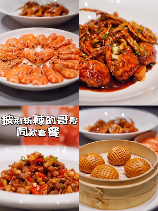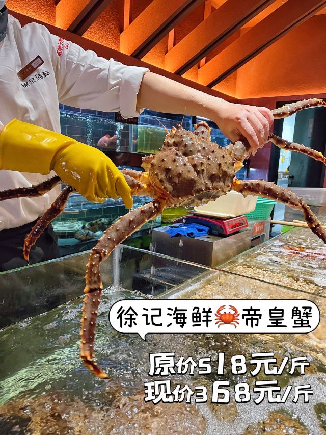 加油干饭呀前阵子在《披荆斩棘的哥哥》里看到徐记海鲜,隔着屏幕有被馋到哦,今天下班后果断拉上闺蜜来解馋👯♀️ 没想到店里已经上线了哥哥们同款套餐,3-4人餐和6-8人餐都能享受7.5折优惠,划算得不止一点点🤙 🦀️闸蟹烧年糕🦀️ 光吃年糕就能管饱的硬菜,糯叽叽们必点☑️浓郁酱汁裹满大闸蟹,细嫩鲜甜的蟹肉啃起来嘎嘎香,吃完还不忘嘬一下手指头☝️ 🦐白灼中对虾🦐 白灼虾最能体现出大虾的原汁原味,虾肉紧致饱满入口Q弹,蘸点酱油瞬间把口感又提升了一个level📈必须按盘吃才过瘾好嘛 🍥鲜菌罗定泡泡鱼腐🍥 可可爱爱的泡泡鱼腐,就像在鲜菌汤里泡温泉,乍看就像油面筋,只有真正咬下去,才会被这一股子鲜香劲儿所折服~ 话说帝皇蟹还有优惠哦,原价518元/斤,现价只要358元/斤,现点现捞现做,真的是破屏而出的新鲜,就问你们冲不冲‼️