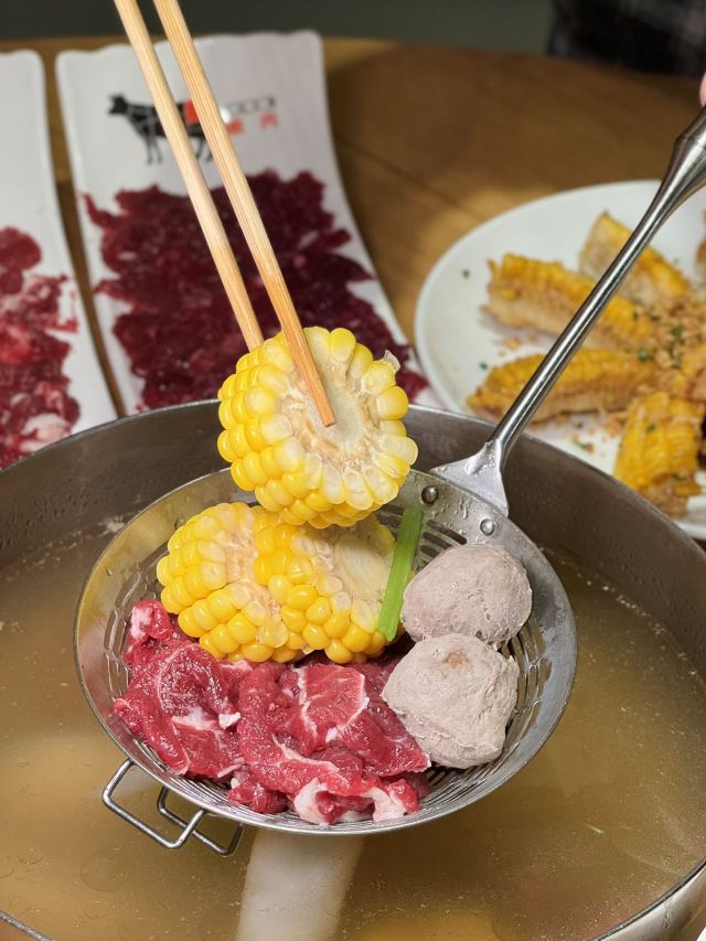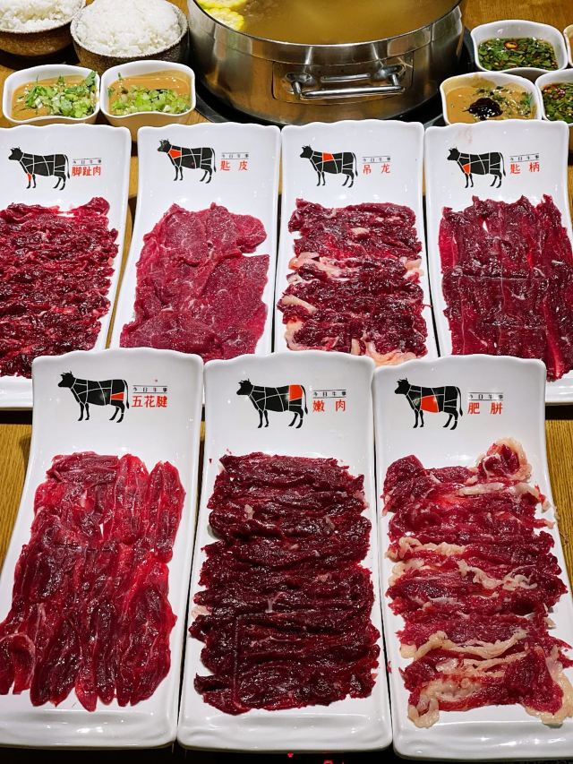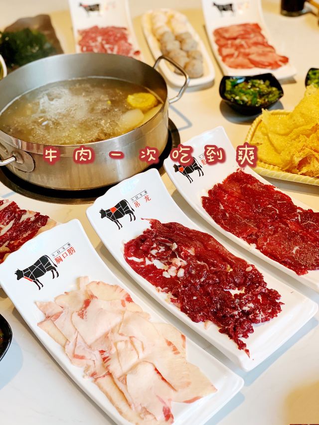 招牌锅底,吊龙,炸腐皮,嫩肉,雪花,匙柄,胸口捞,鲜切肥胼,潮汕牛肉丸,牛肉丸,牛舌,春菜苗,手打牛肉丸,生牛肉丸,肥胼,牛百叶,沙茶酱,白萝卜,爸爸的慢炖牛腩,脚趾肉,雪花牛肉,牛筋,潮汕生牛肉丸,牛事招牌锅,牛肉火锅