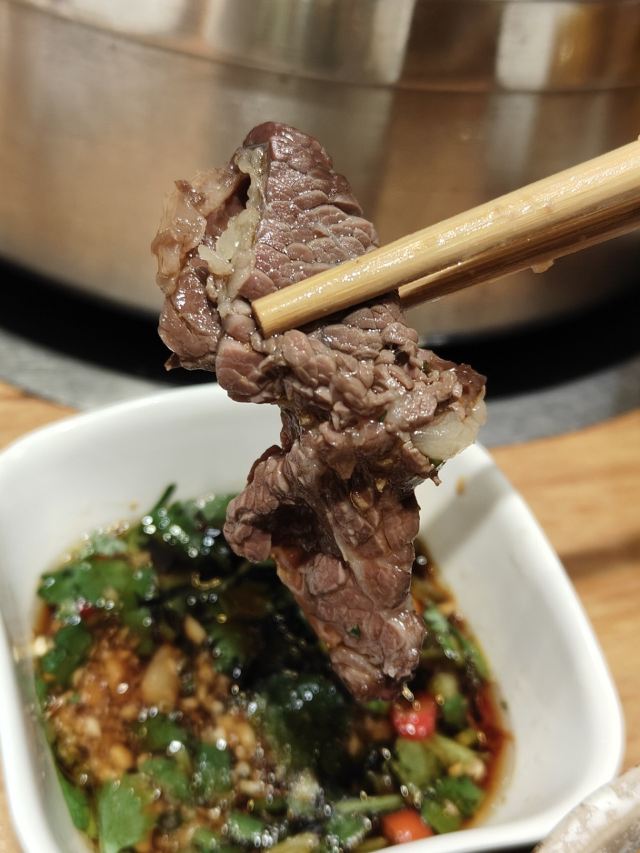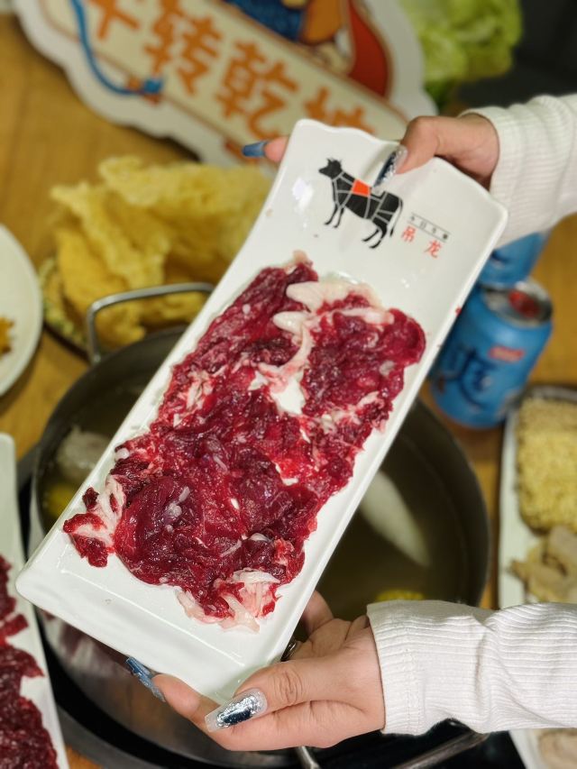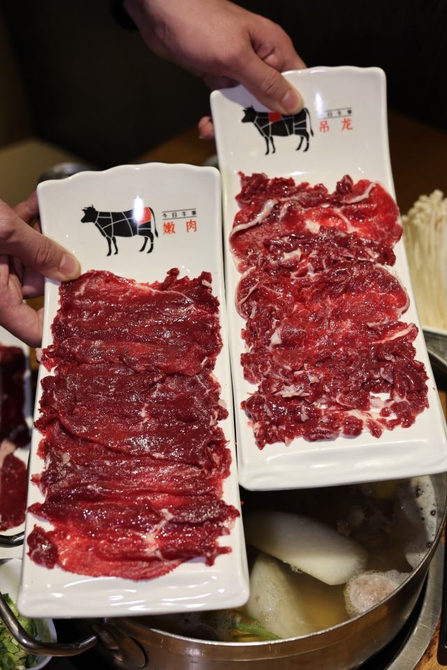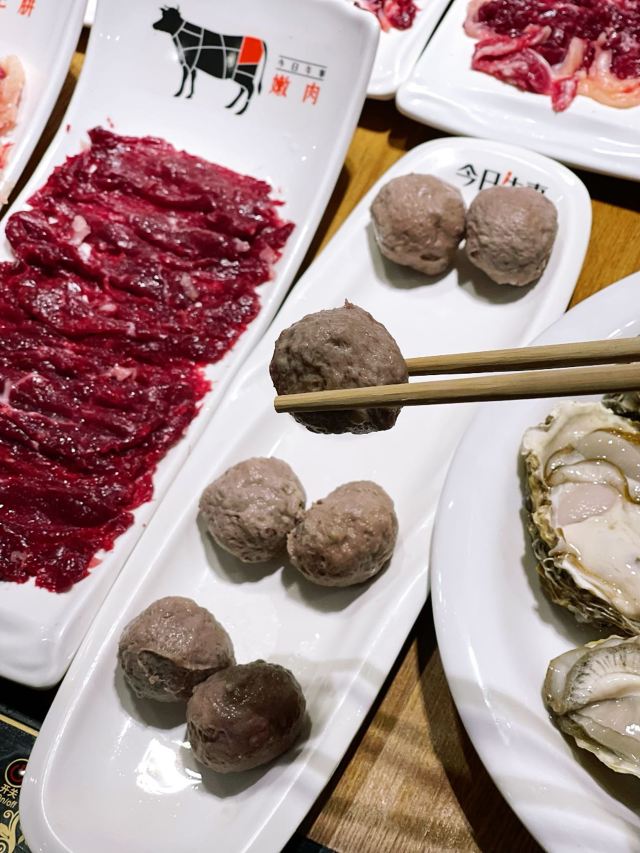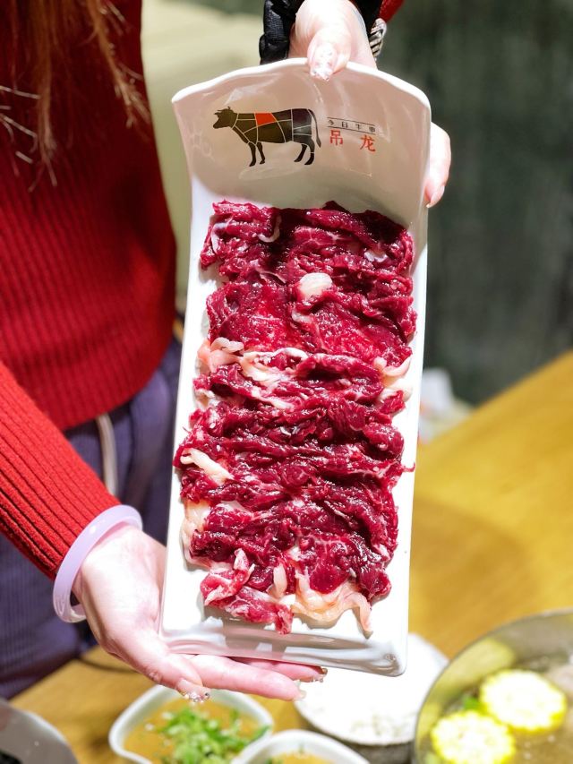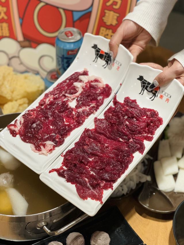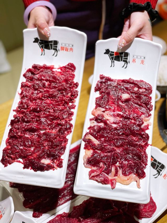 YoYo_9Z3C2S3B吃潮汕牛肉火锅就来今日牛事 潮汕旅游回来不久,又心心念念起潮汕牛肉火锅来。同事说今日牛市的牛肉和潮汕的一模一样,下班后拉着老公去过过瘾。 🍀环境:超大的店面,桌椅摆的非常宽敞,无论是二人、四人还是六人位,都比其他火锅店空间大一倍。自助料理台上的酱料质量都很赞,香菜、葱花一直保持满满的,小料都摆放很整齐。 🍀服务:服务员热情有礼,随叫随到,倒茶、加汤都很积极。 吊龙 不愧为牛肉中的顶级部位,2分油脂8分嫩肉,入锅涮12秒捞出,蘸上店里特制的沙茶酱,吃起来好满足! 匙柄 柔软多汁,带有嚼劲,弹牙脆嫩,嗲! 五花腱 有筋有肉,不柴不硬,口感富有弹性,爽口美味😋。 潮汕牛肉丸 潮汕牛肉丸真的与众不同,紧实、弹性十足,口感一级棒! 秘制凉茶 很有特色,入口有淡淡的药草味,微微甜,解腻佳品! 很正宗的潮汕火锅,这下不用去潮汕也能尝到潮汕美味啦! 🏠店名:今日牛事潮汕鲜牛肉火锅(静安寺店) 🚗地址:胶州路709号 [图片]